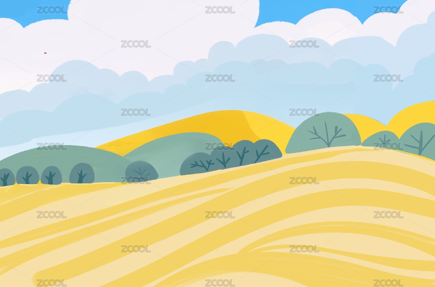 蓝,白云,麦田,农庄,丰收,麦子,季节,秋游,变化,插画