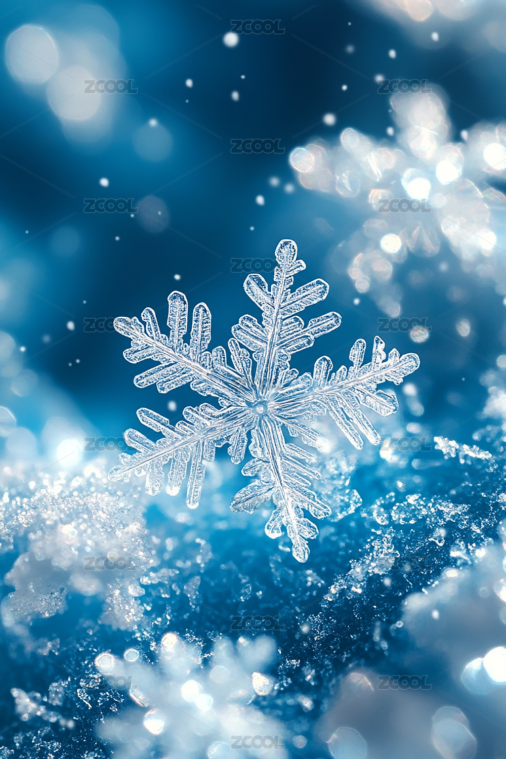 雪,雪花,冰,冰晶,无人,冬天,微距,特写,AI数字艺术,蓝色