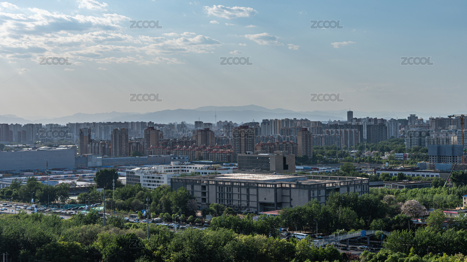 中国内蒙古呼和浩特市敕勒川公园、省委政府办公楼全景风光