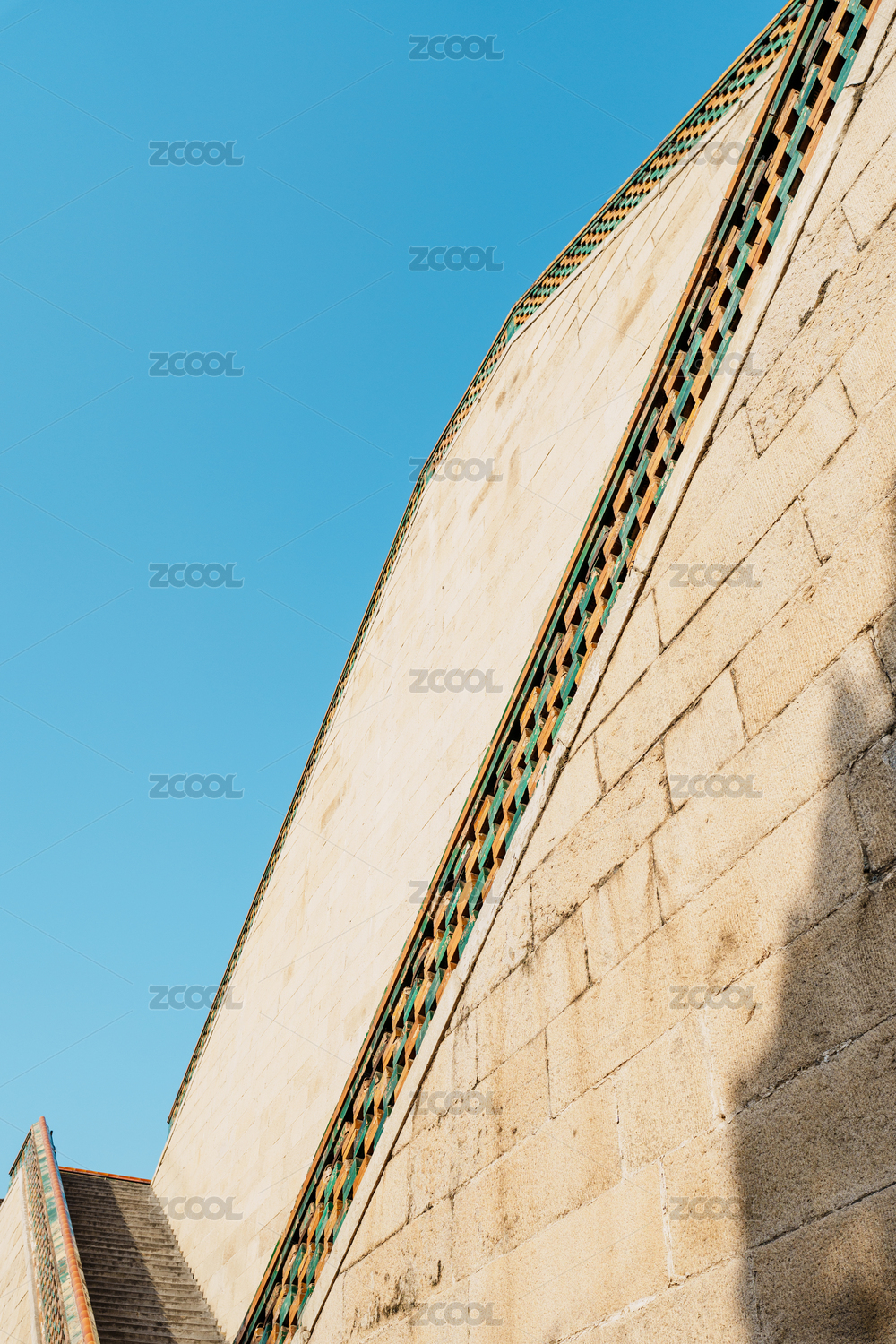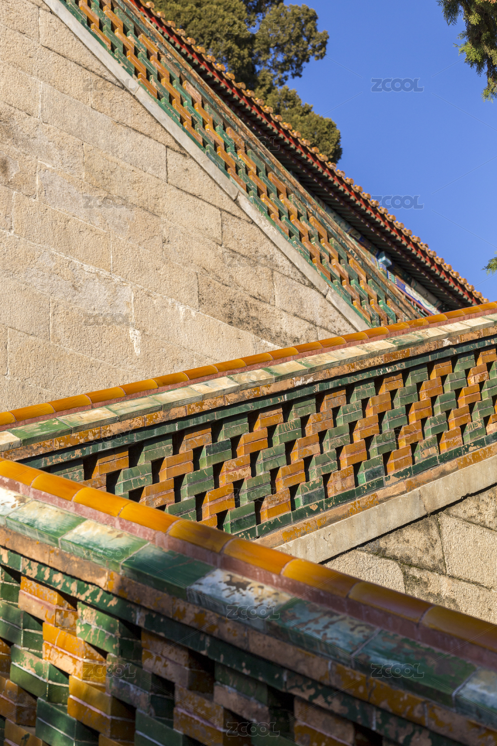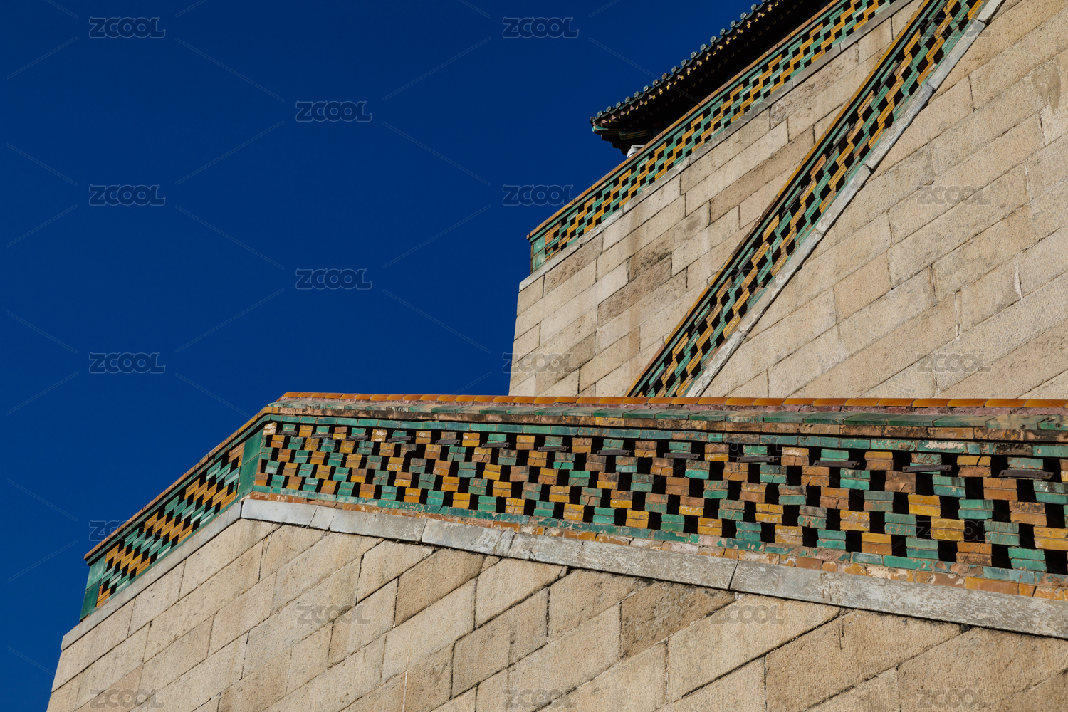 佛香阁,颐和园景区,黄绿琉璃瓦,墙壁,仰视