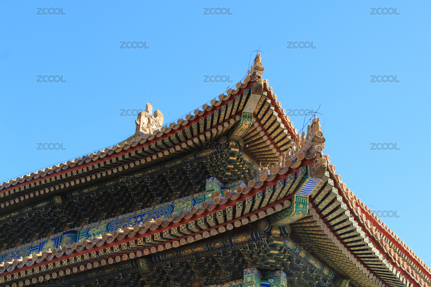 晴朗天气中国北京故宫紫禁城古建筑宫殿屋檐