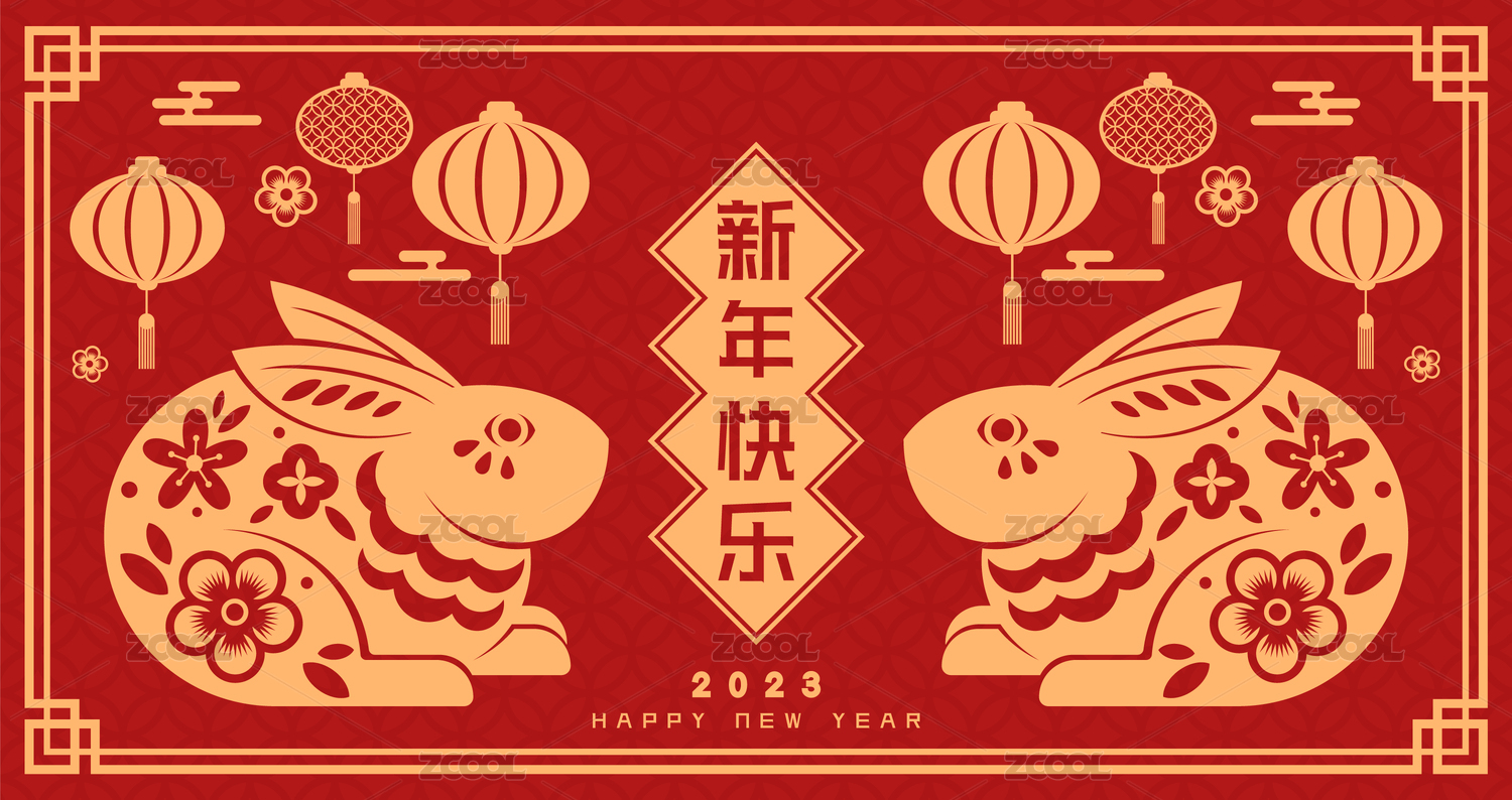2023兔年新年海报背景和中国传统元素