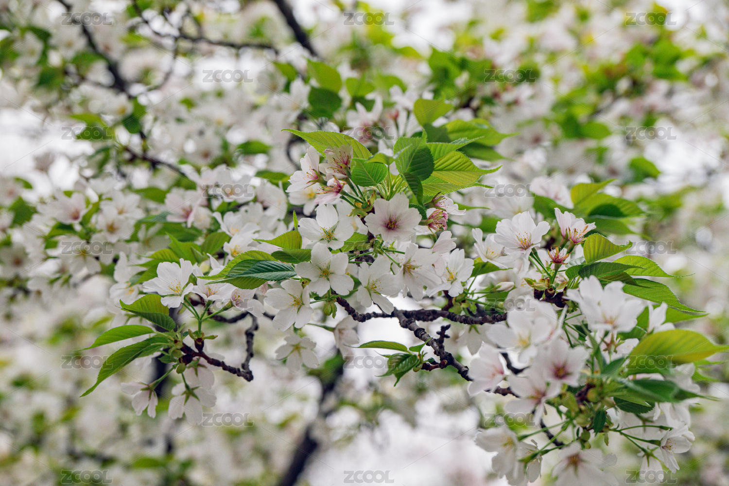 春天枝头绽放的淡雅白色海棠花繁花似雪