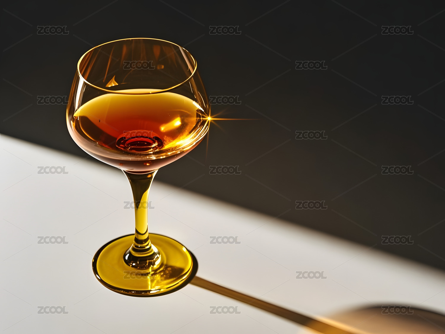 高脚杯饮料,冰块下落瞬间,纯色背景