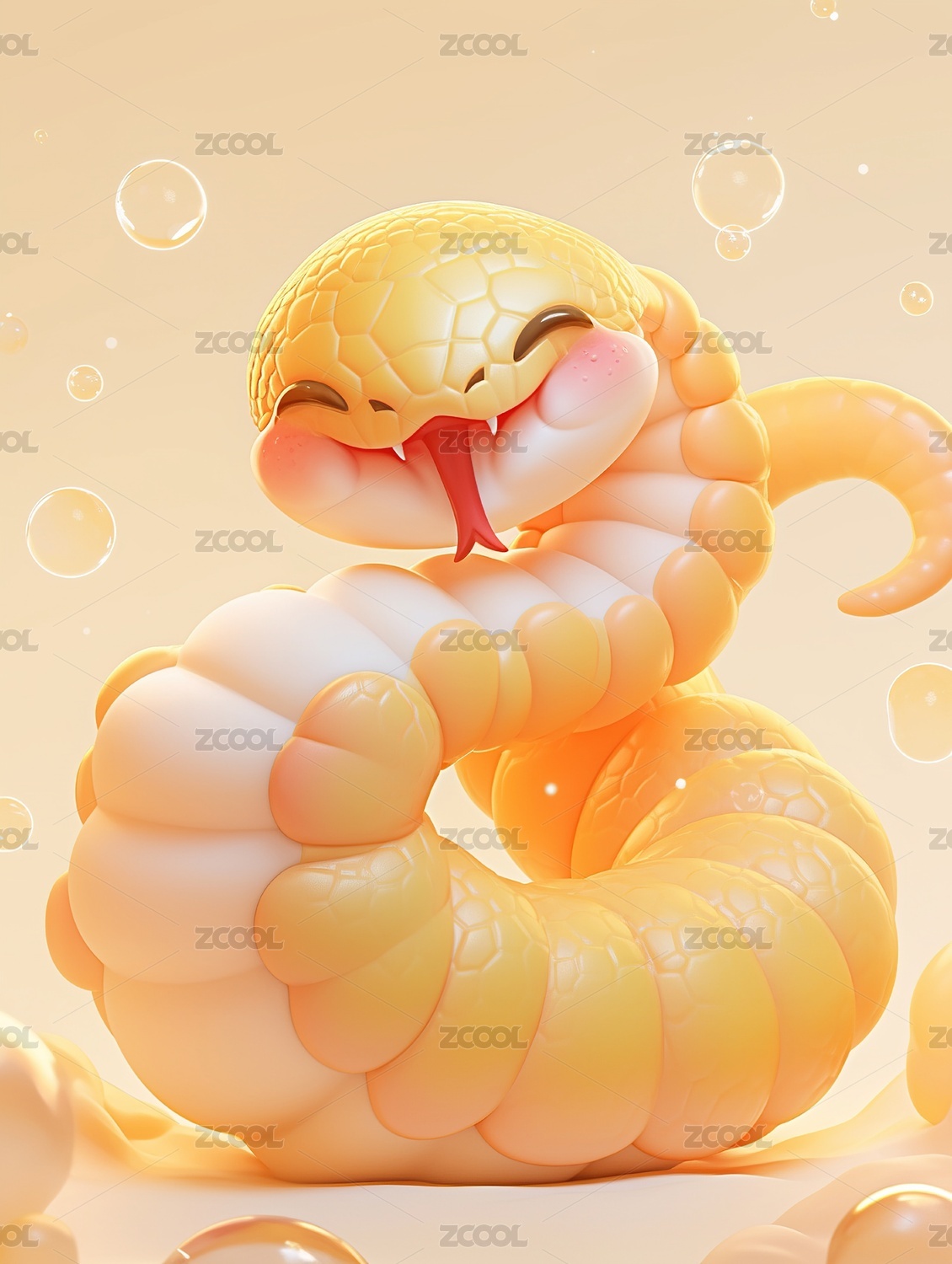 动物,新年,插画,3D,生肖,手办,潮玩,蛇,蛇年