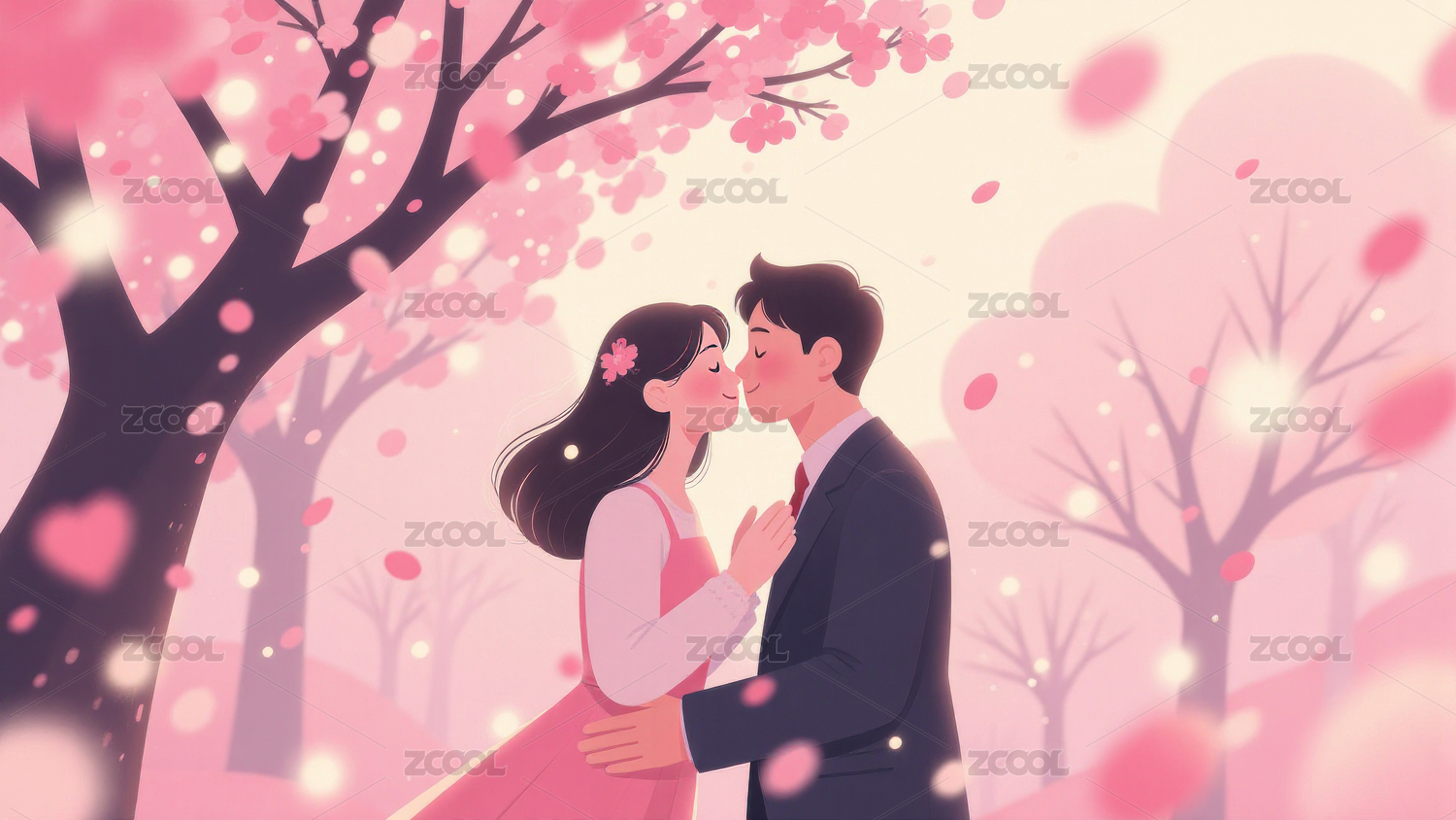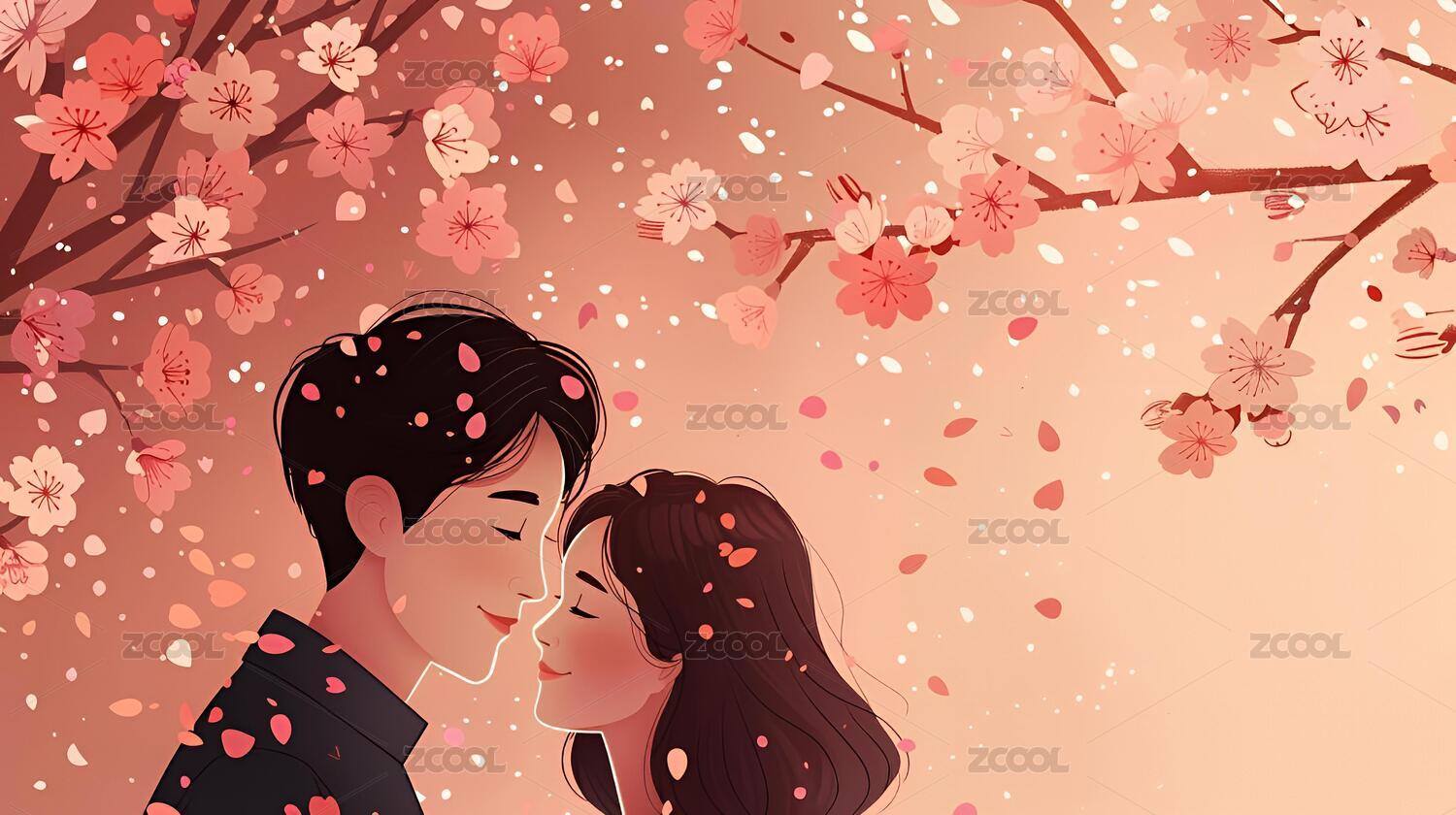 樱花树下的浪漫相遇七夕节情人节浪漫爱情