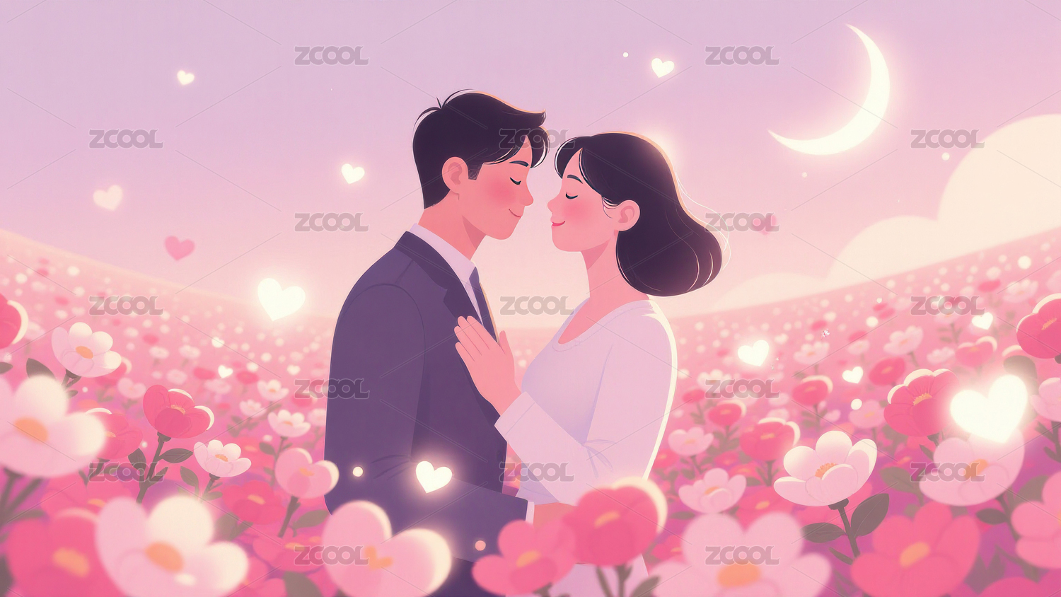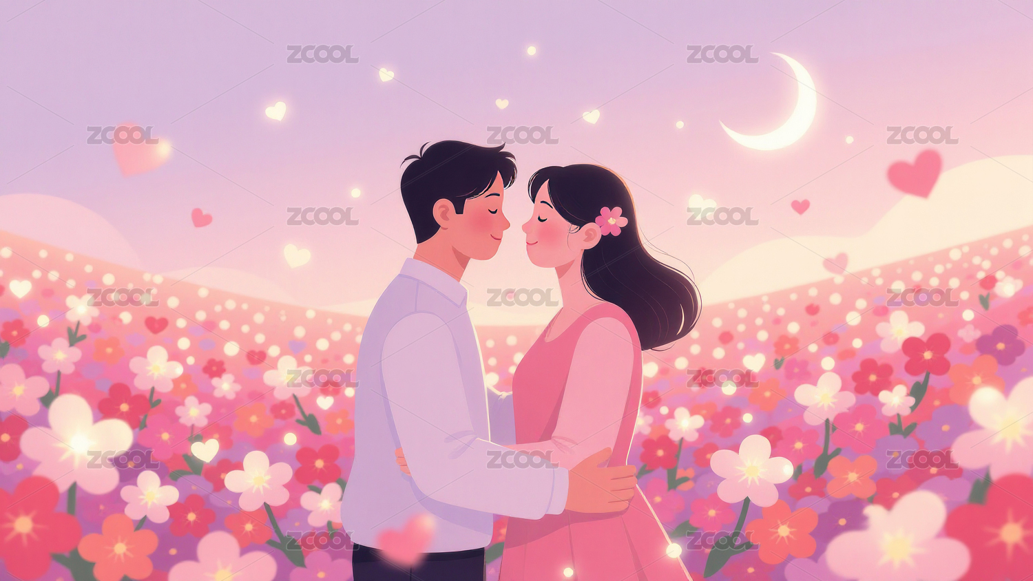 星空下的浪漫相拥花海中的甜蜜爱恋情人节