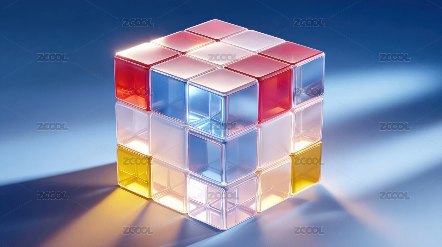 彩色透明赛博荧光色晶体宝石魔方3D插