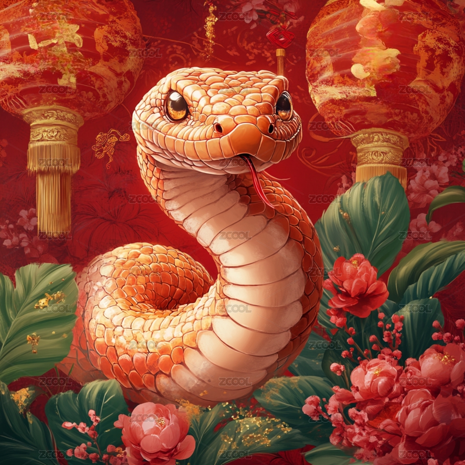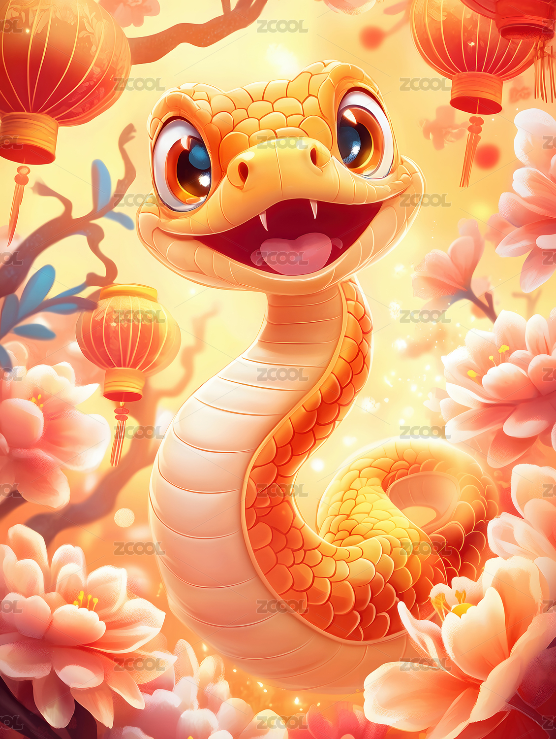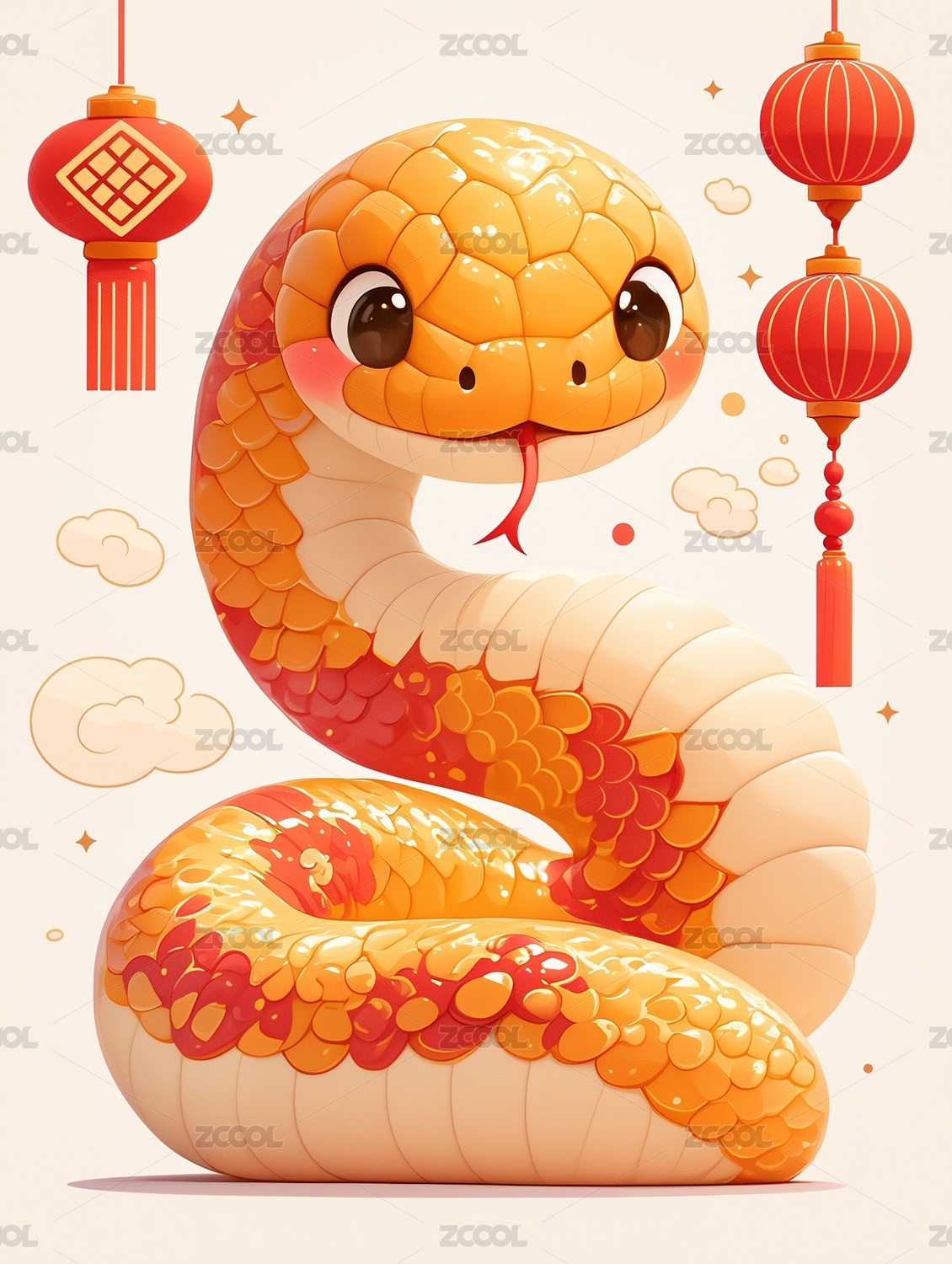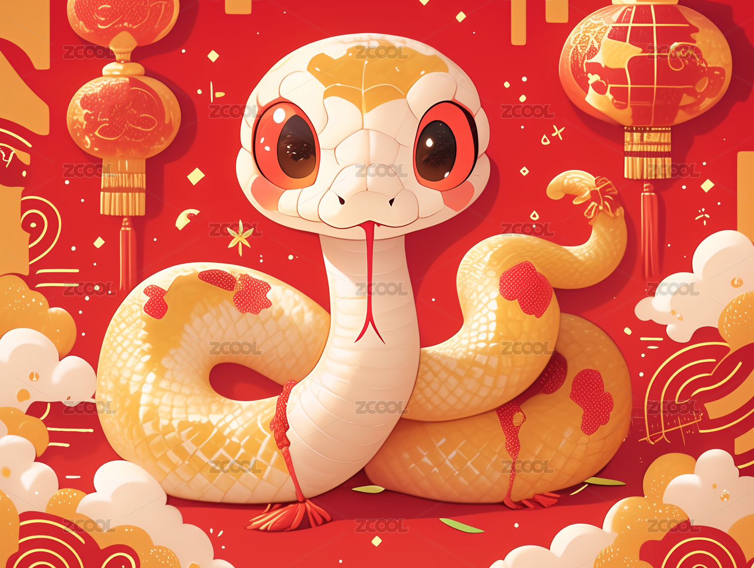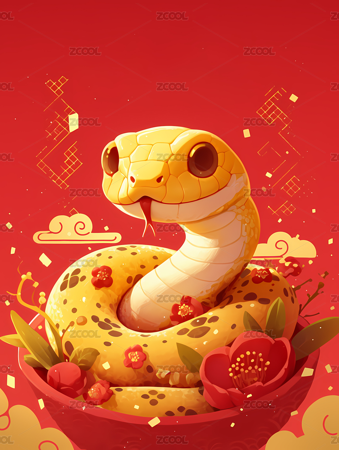 2025春节金蛇宝宝蛇年可爱吉祥物年画
