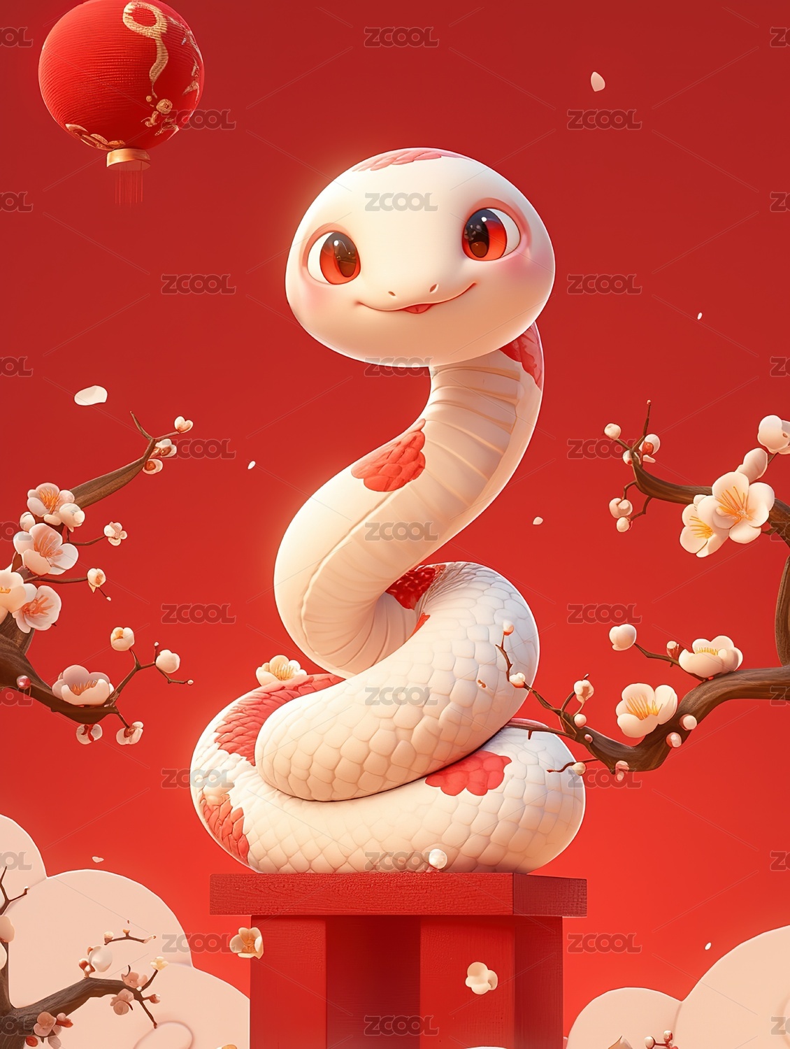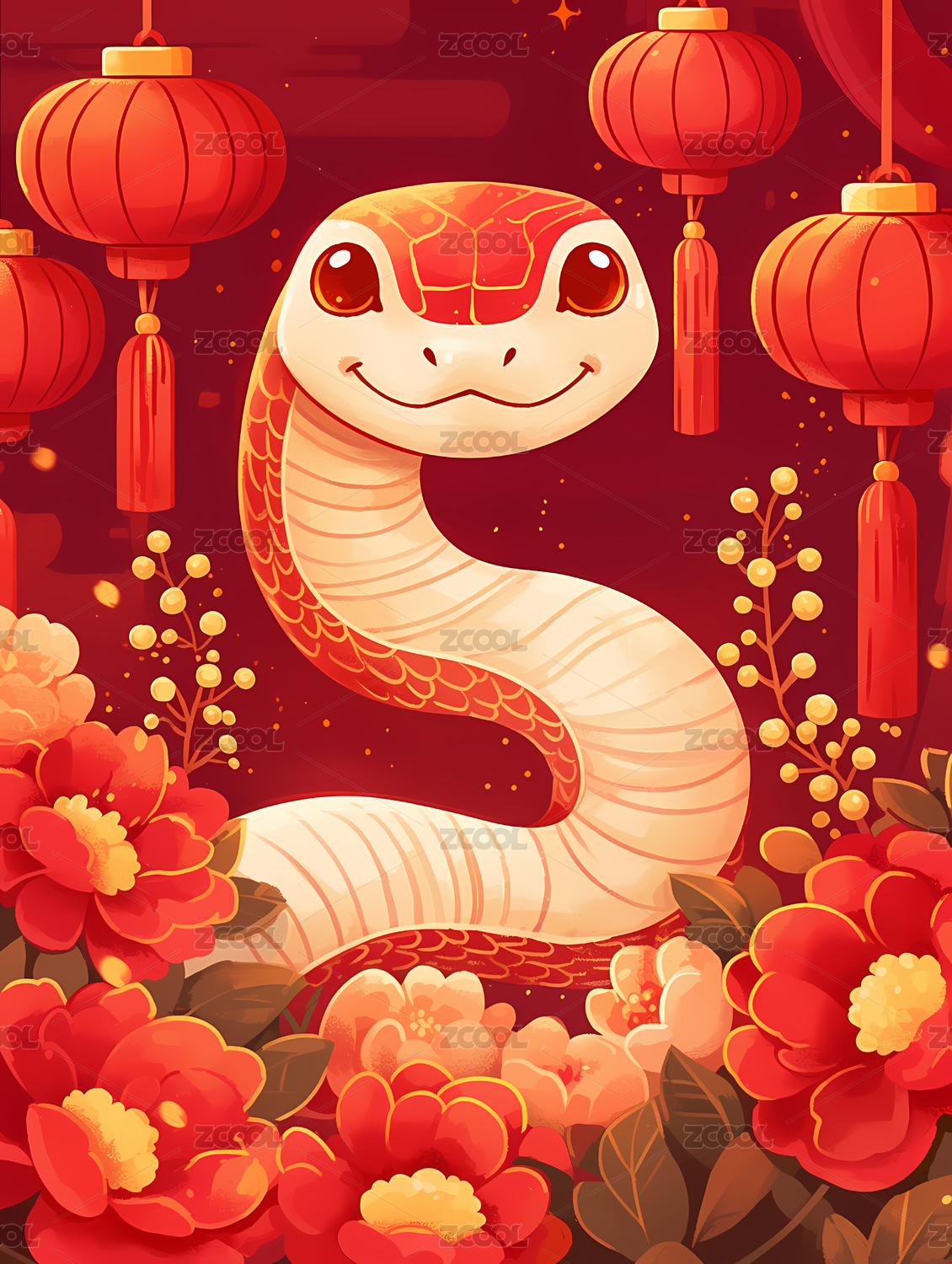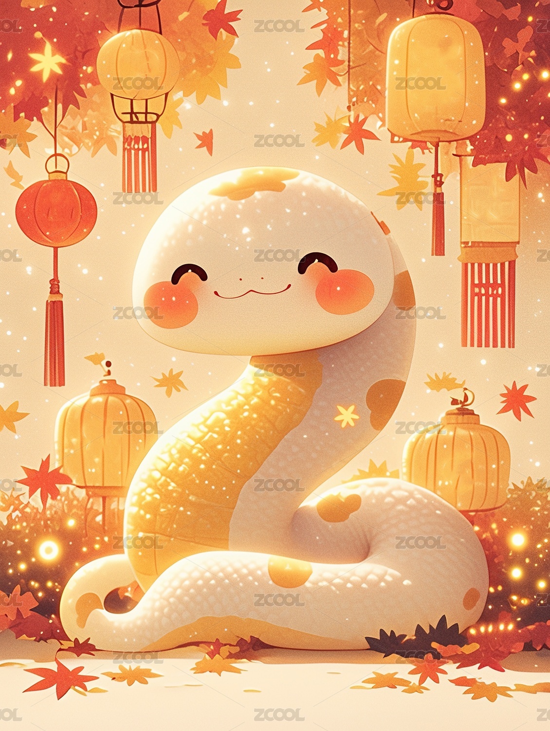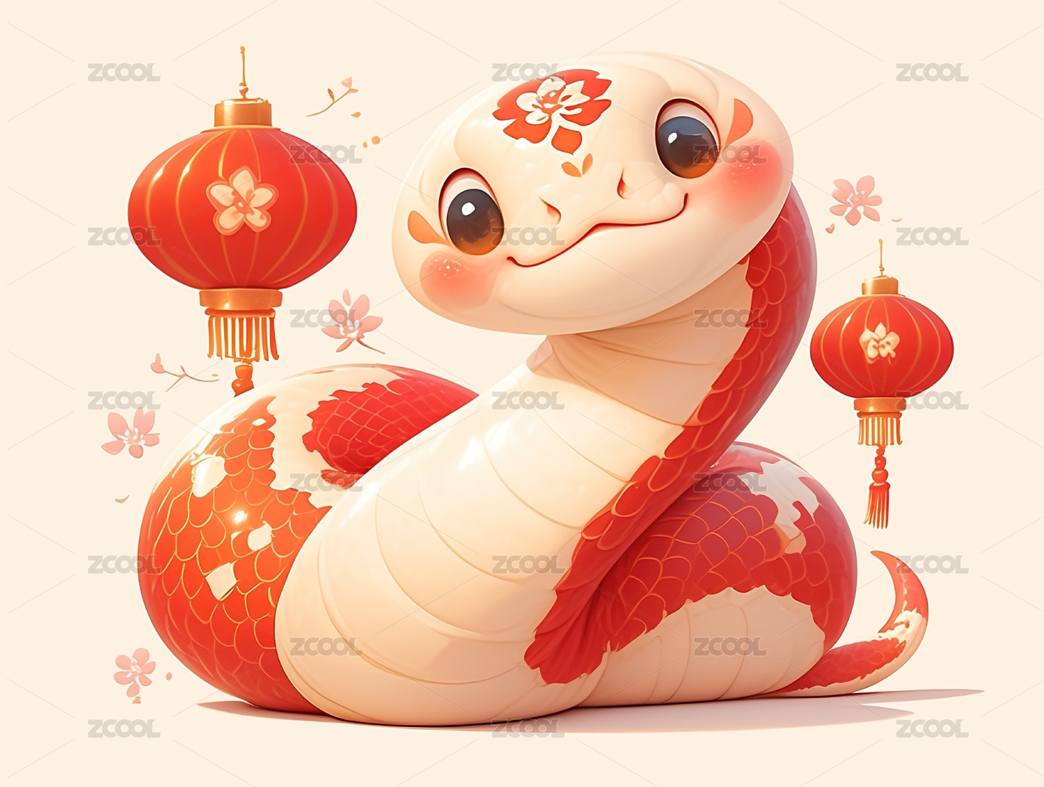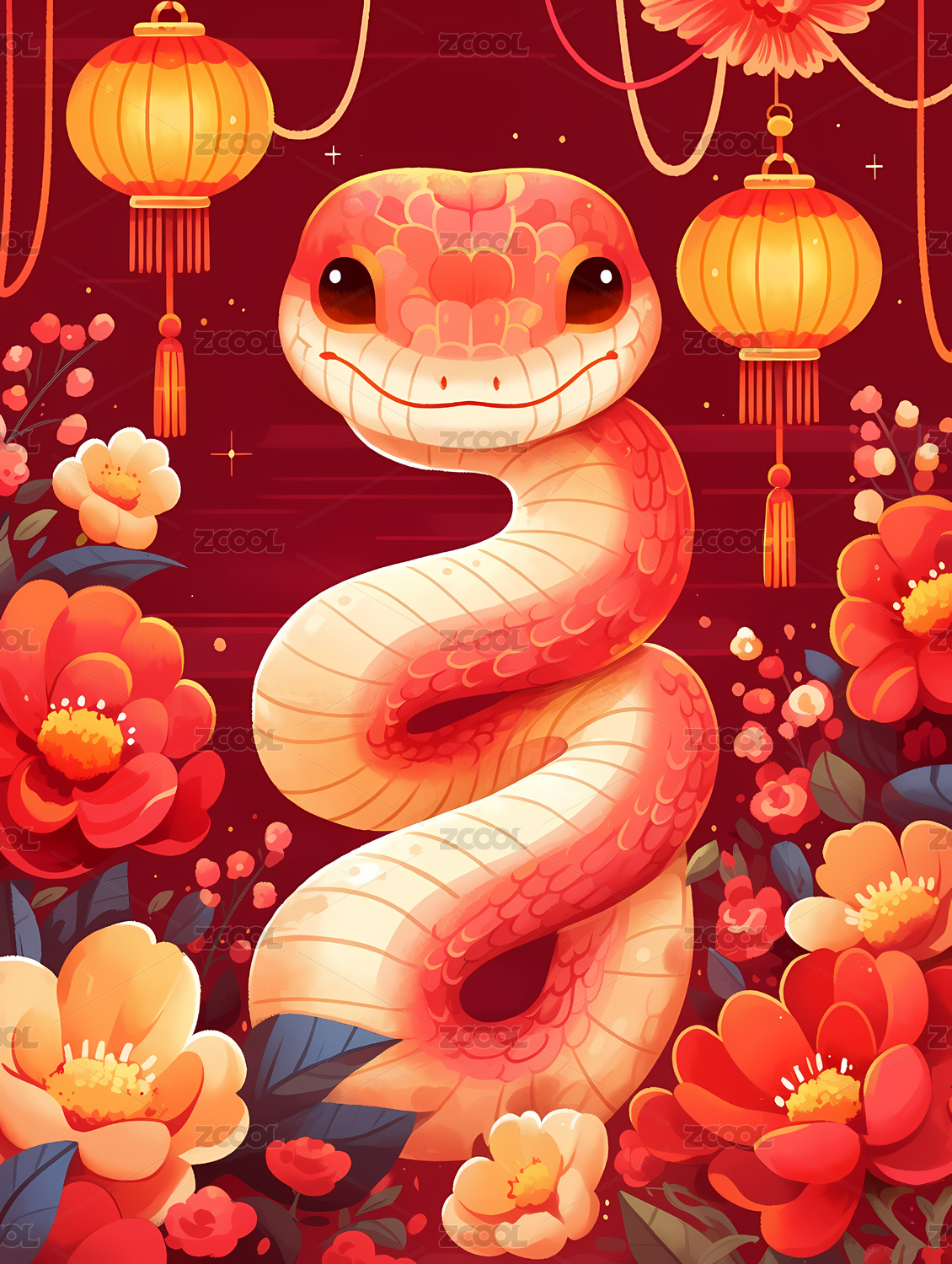 2025春节金蛇宝宝蛇年可爱吉祥物年画