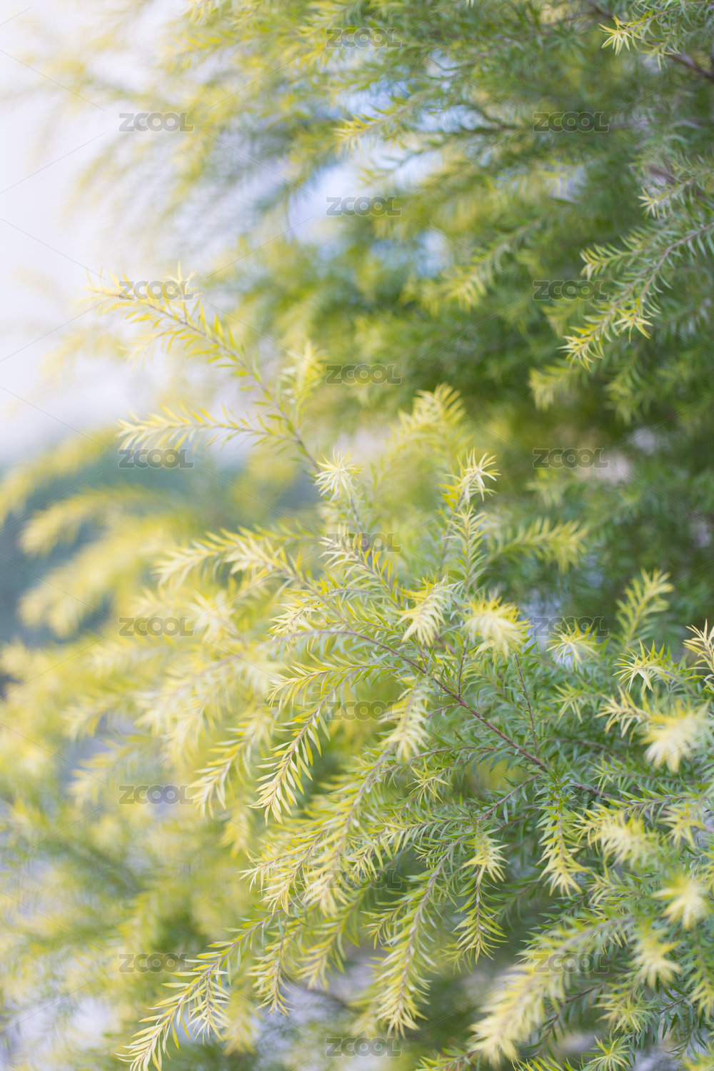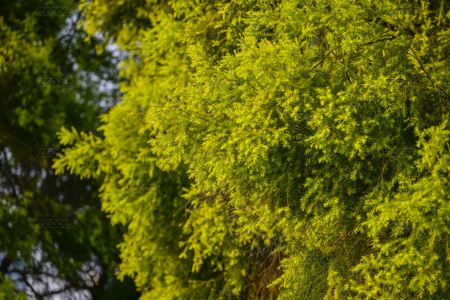 春天的公园里枝叶茂密的针叶树