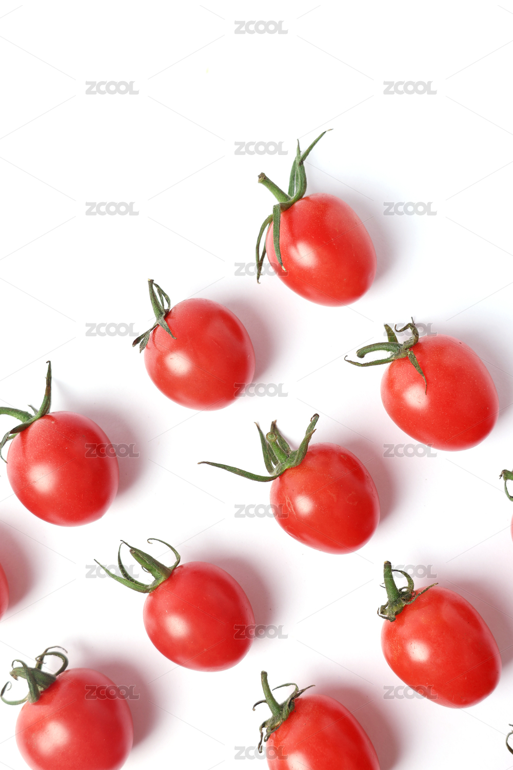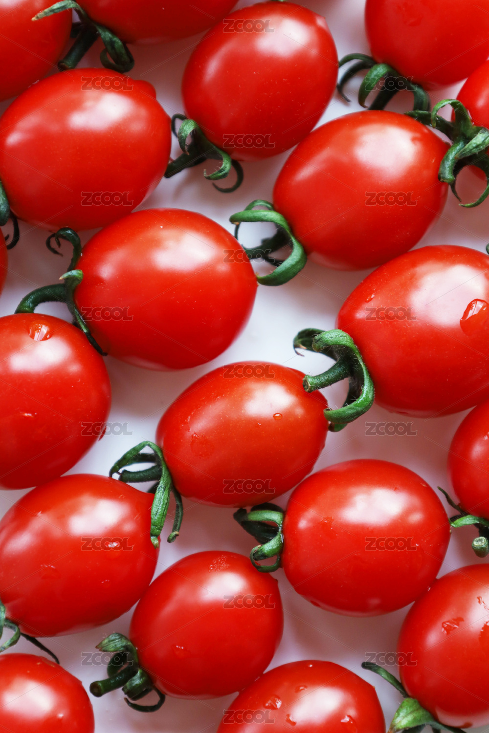 小番茄整齐的排列在白色背景上