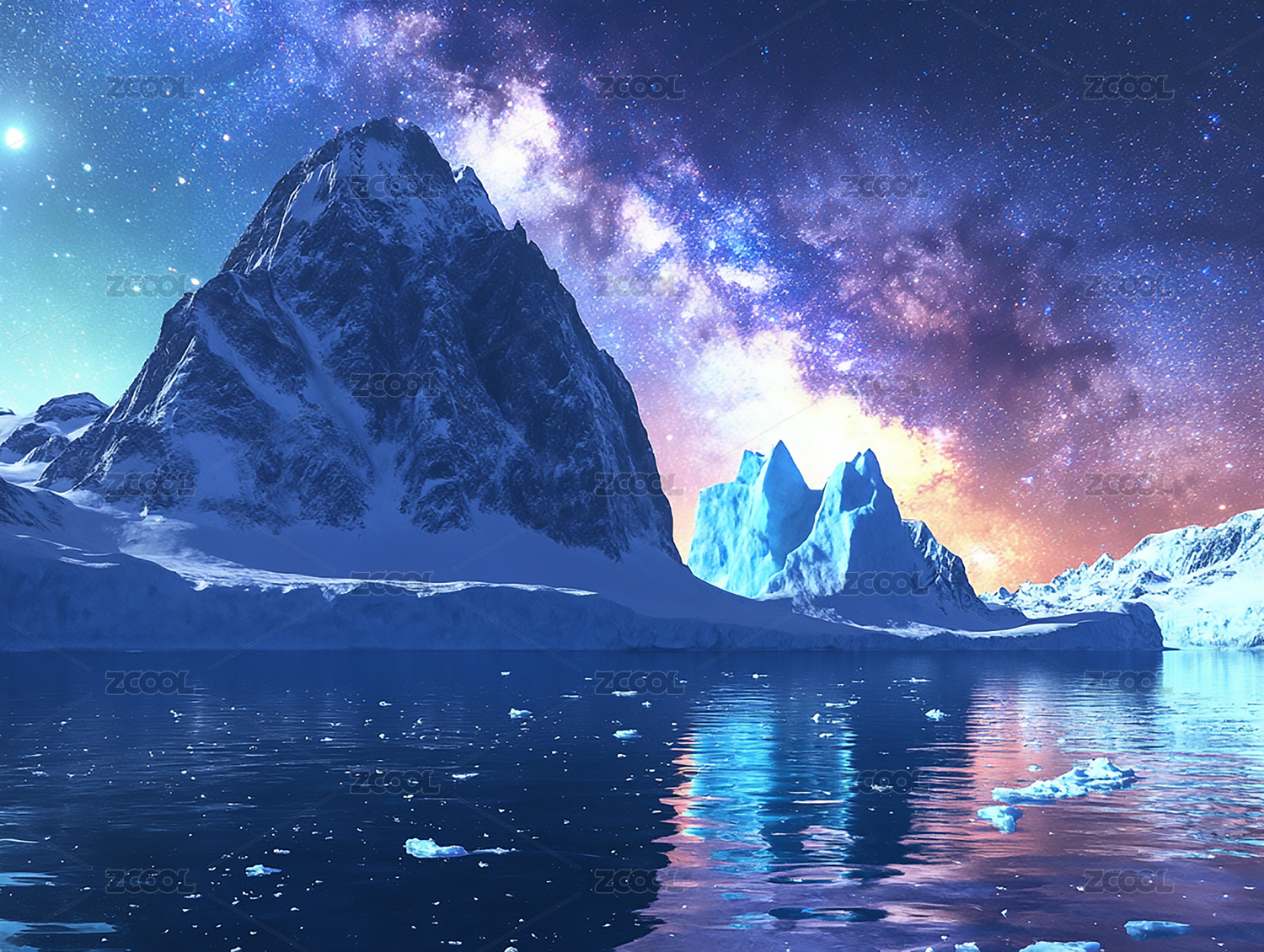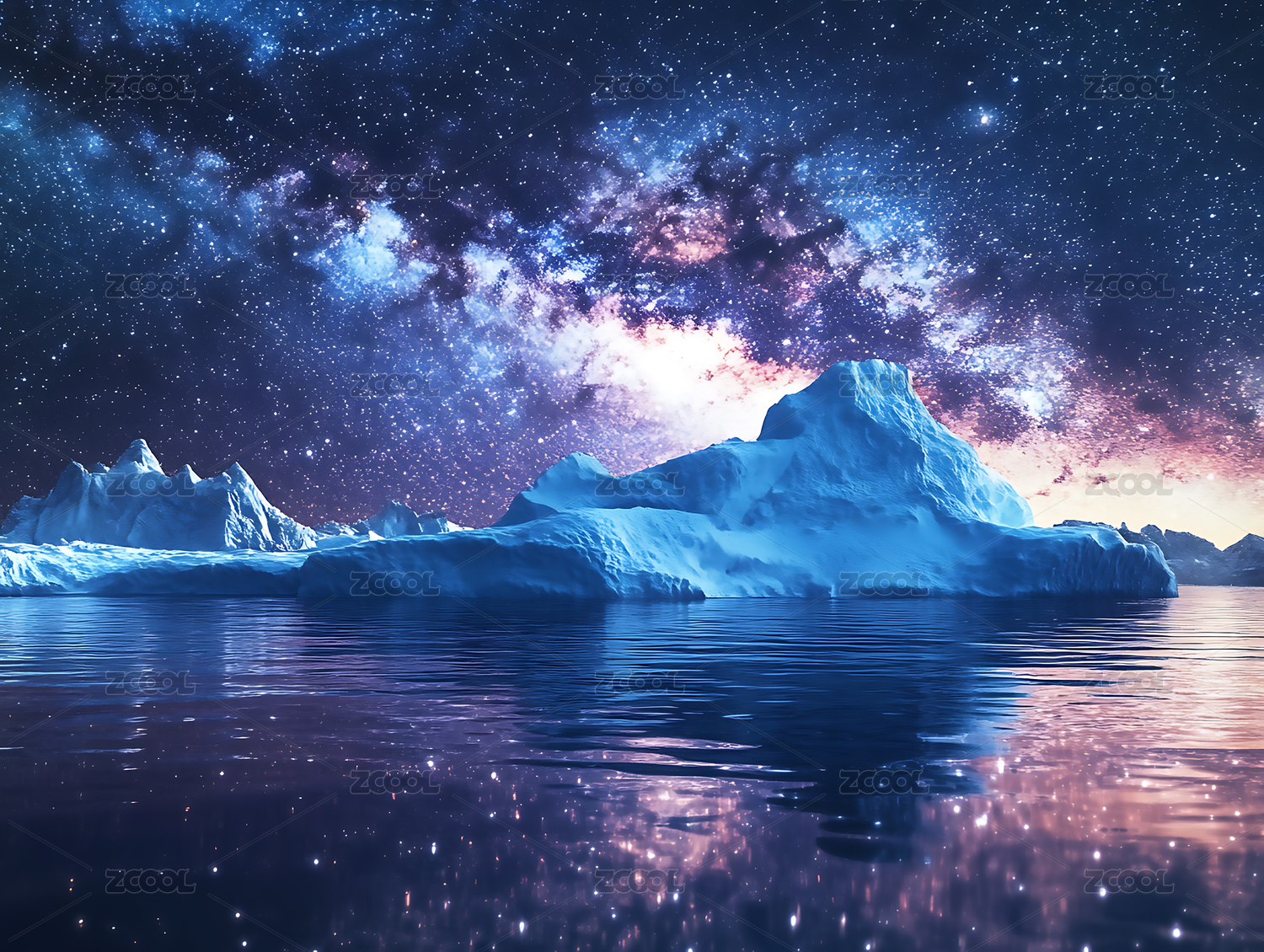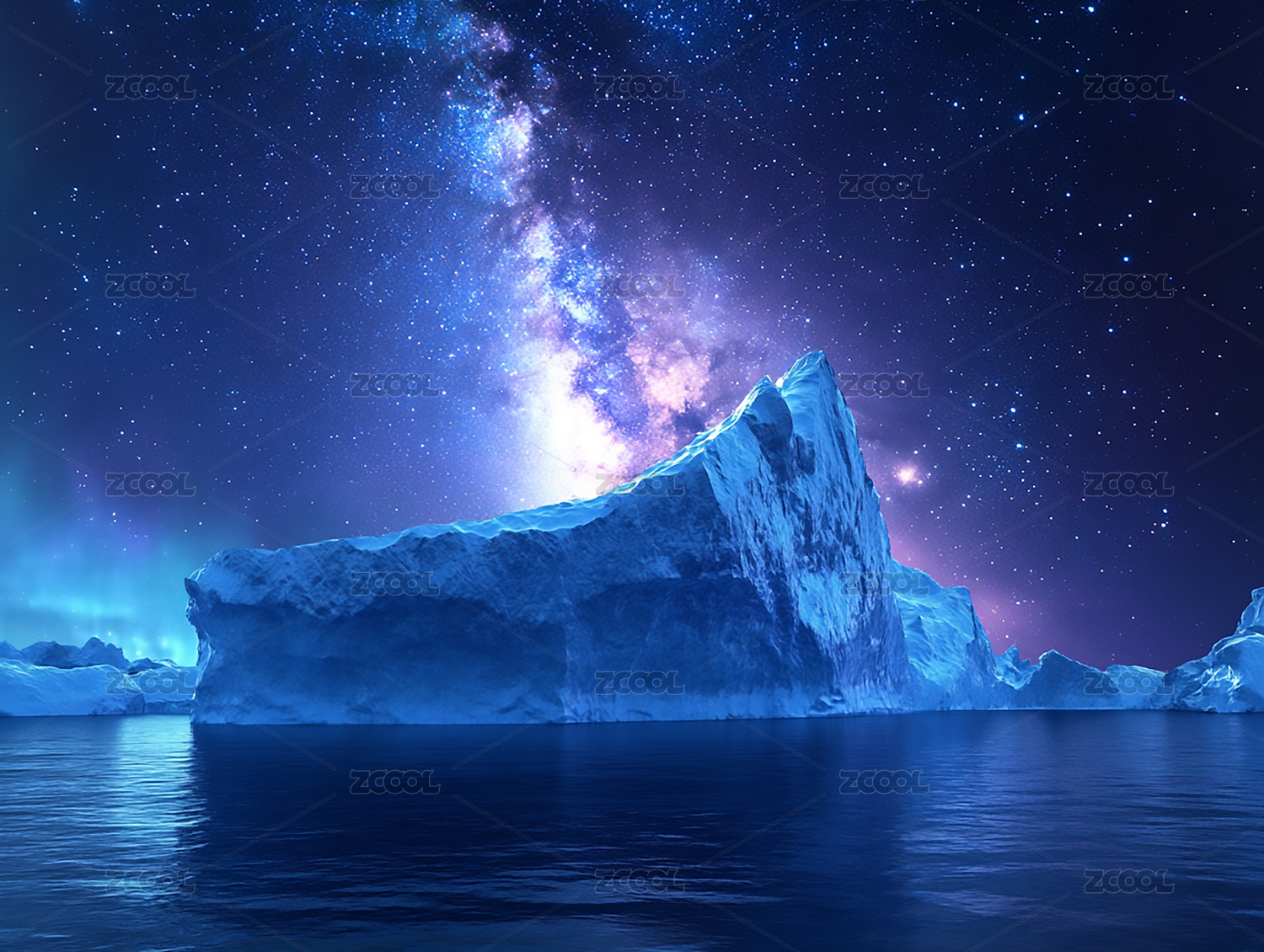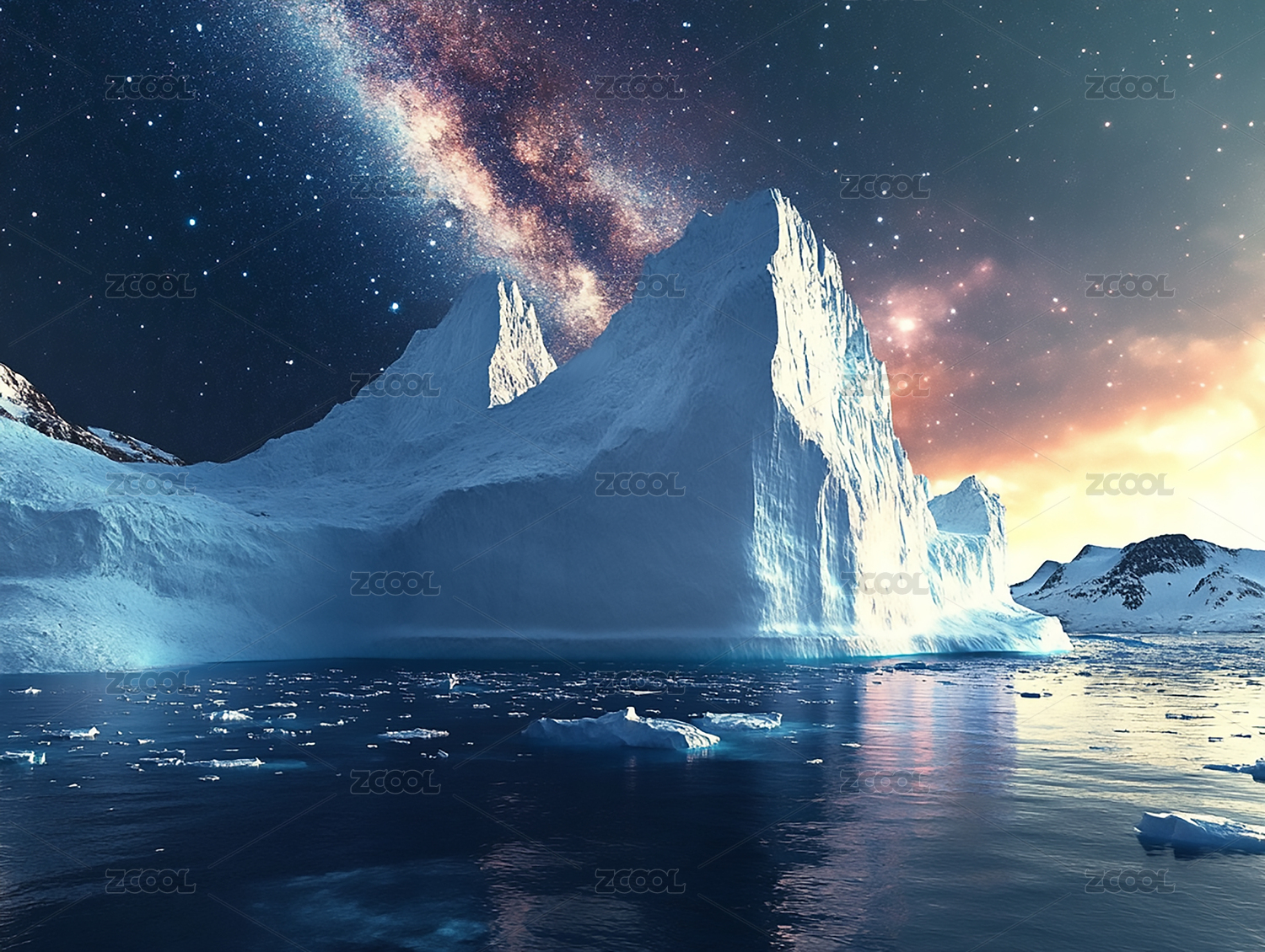 银河,冰山,海面,北极,南极,寒冷,夜晚,背景,自然,地理