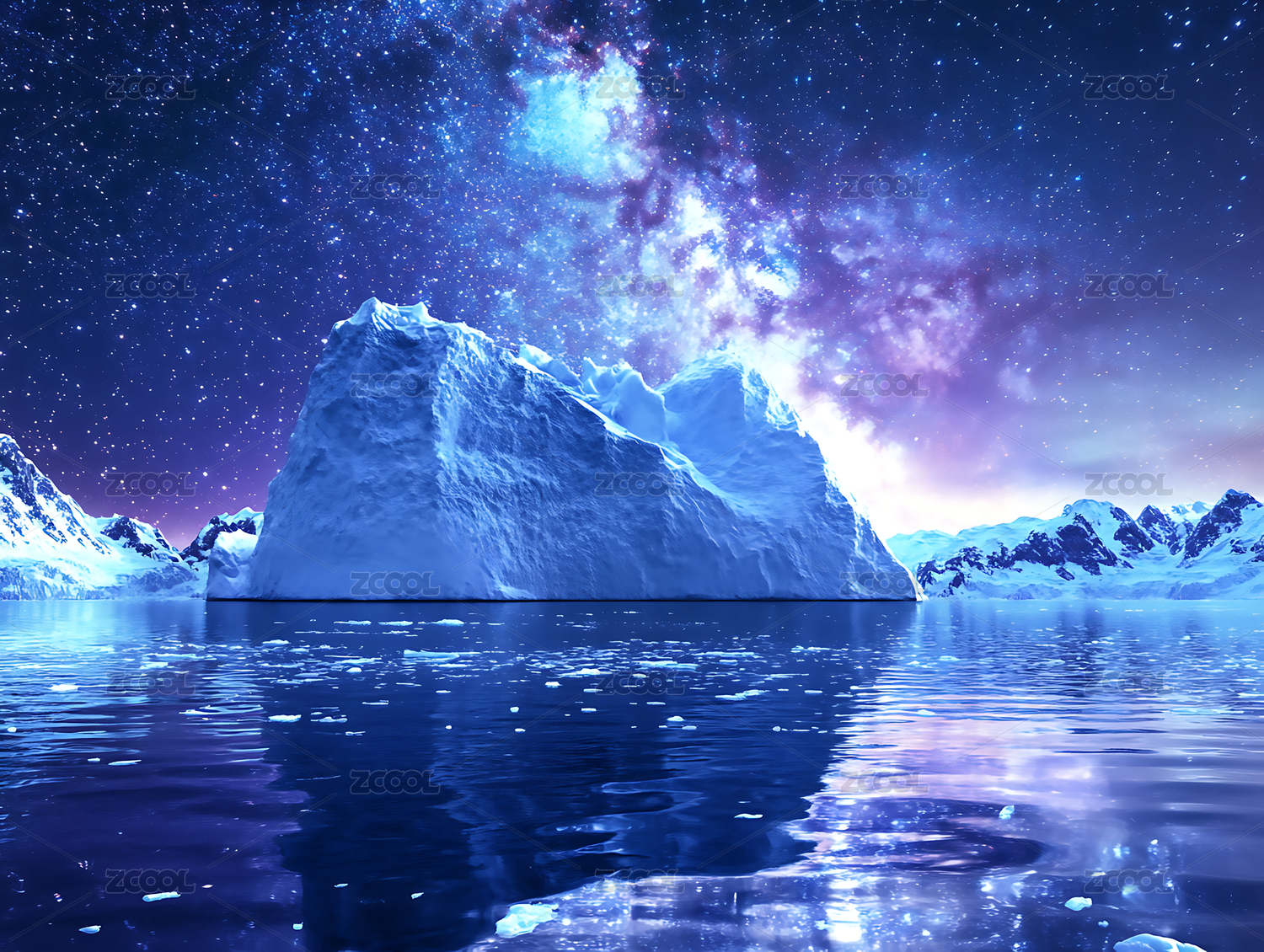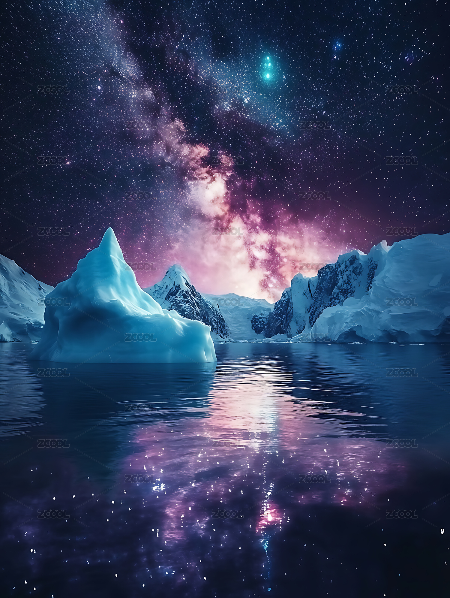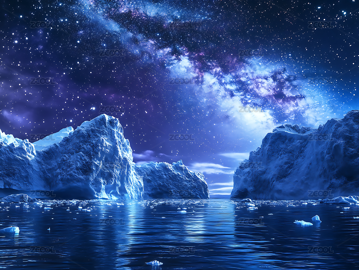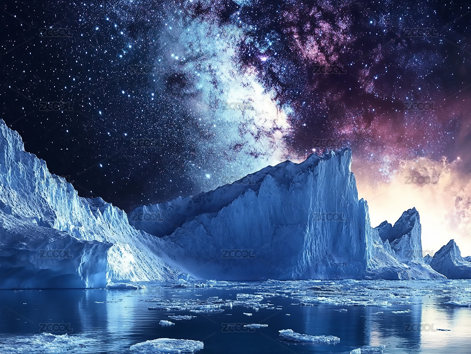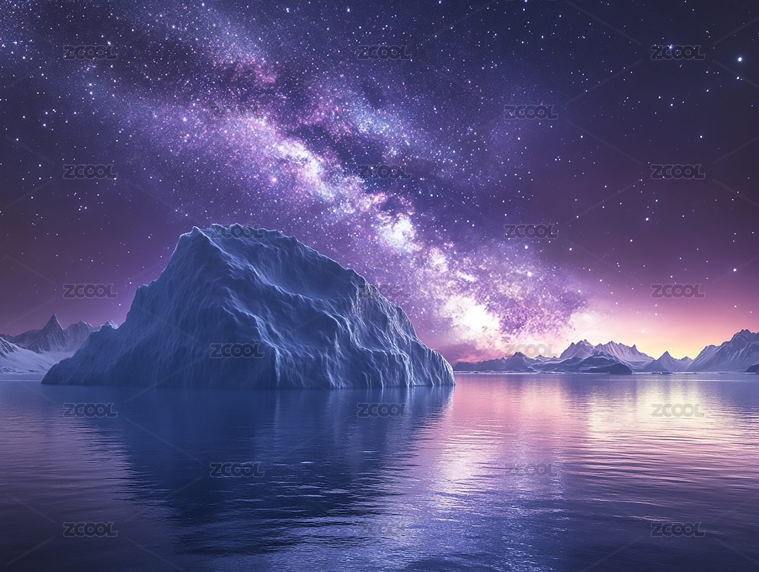 银河,冰山,海面,北极,南极,寒冷,夜晚,背景,自然,地理