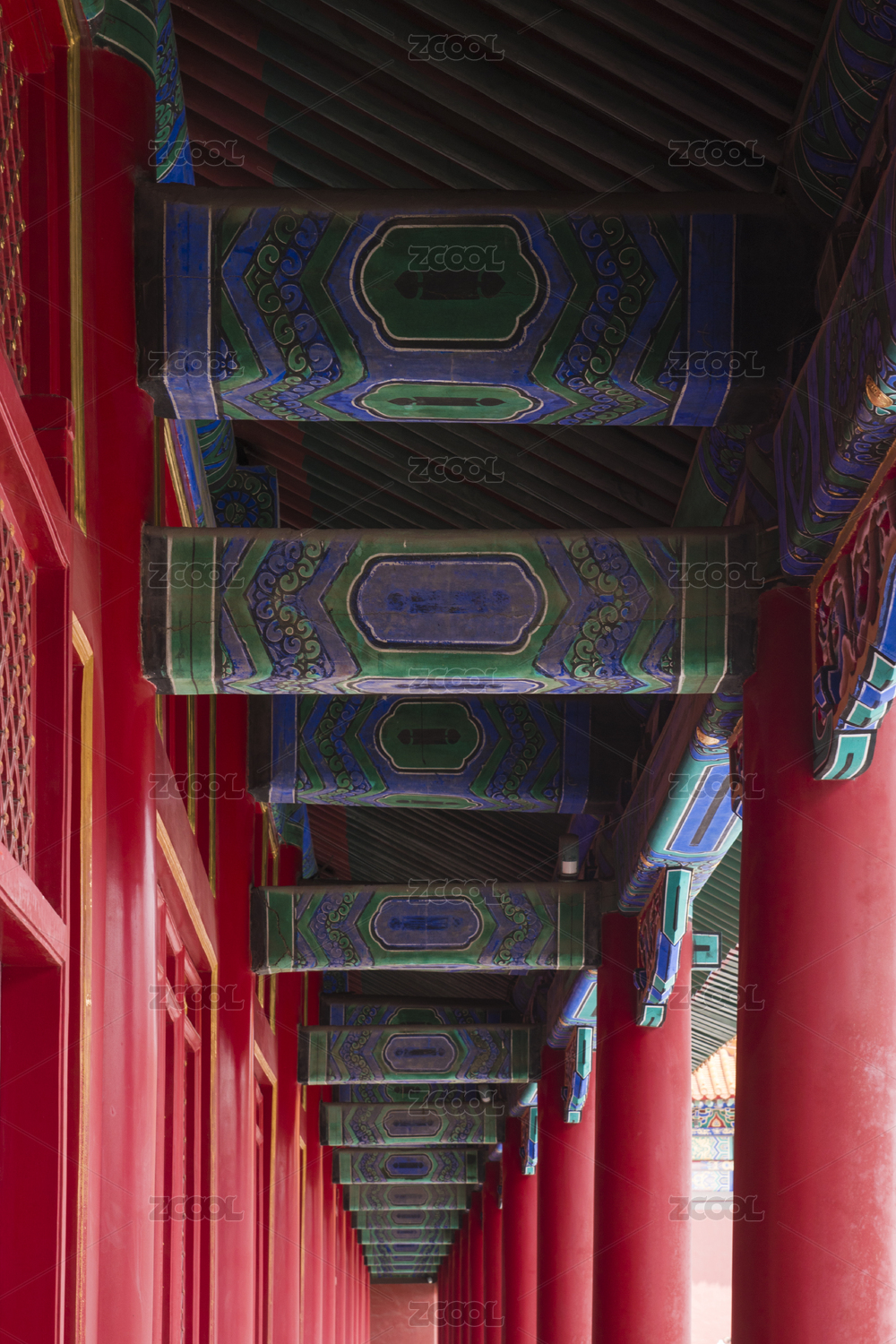 中国北京故宫午门里的隔扇门与朱漆檐柱