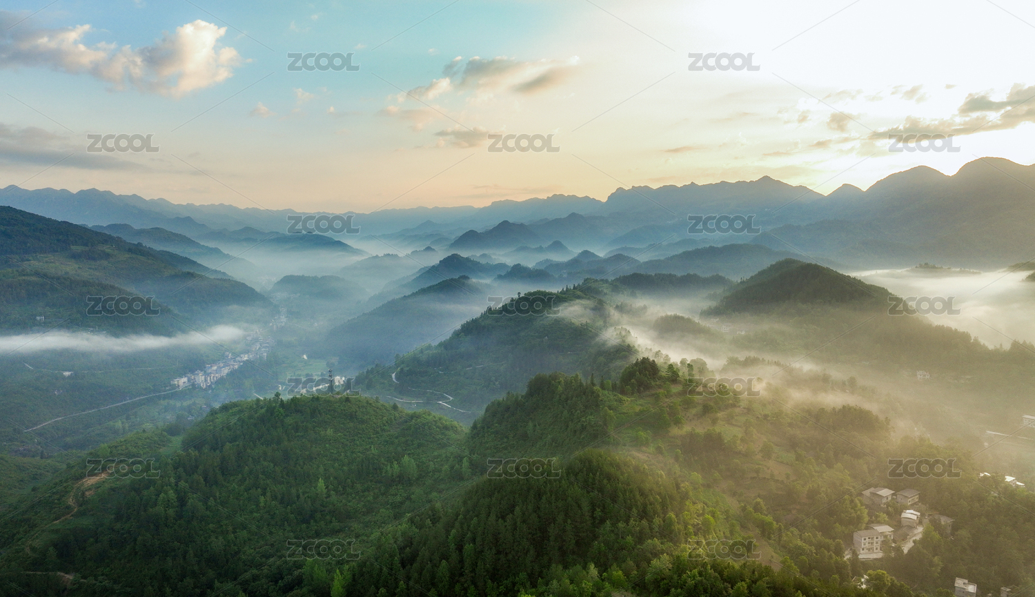 亚洲,中国,重庆,武陵山区,群山,夕阳,美景,乡村,群山逶迤,残阳