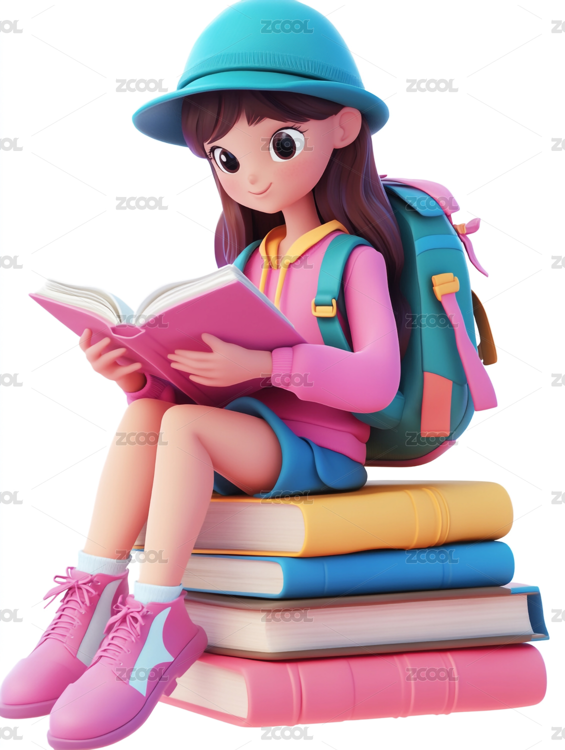 3D,三维,立体,学生,少女,补习班,课外班,学习,女孩,小学生