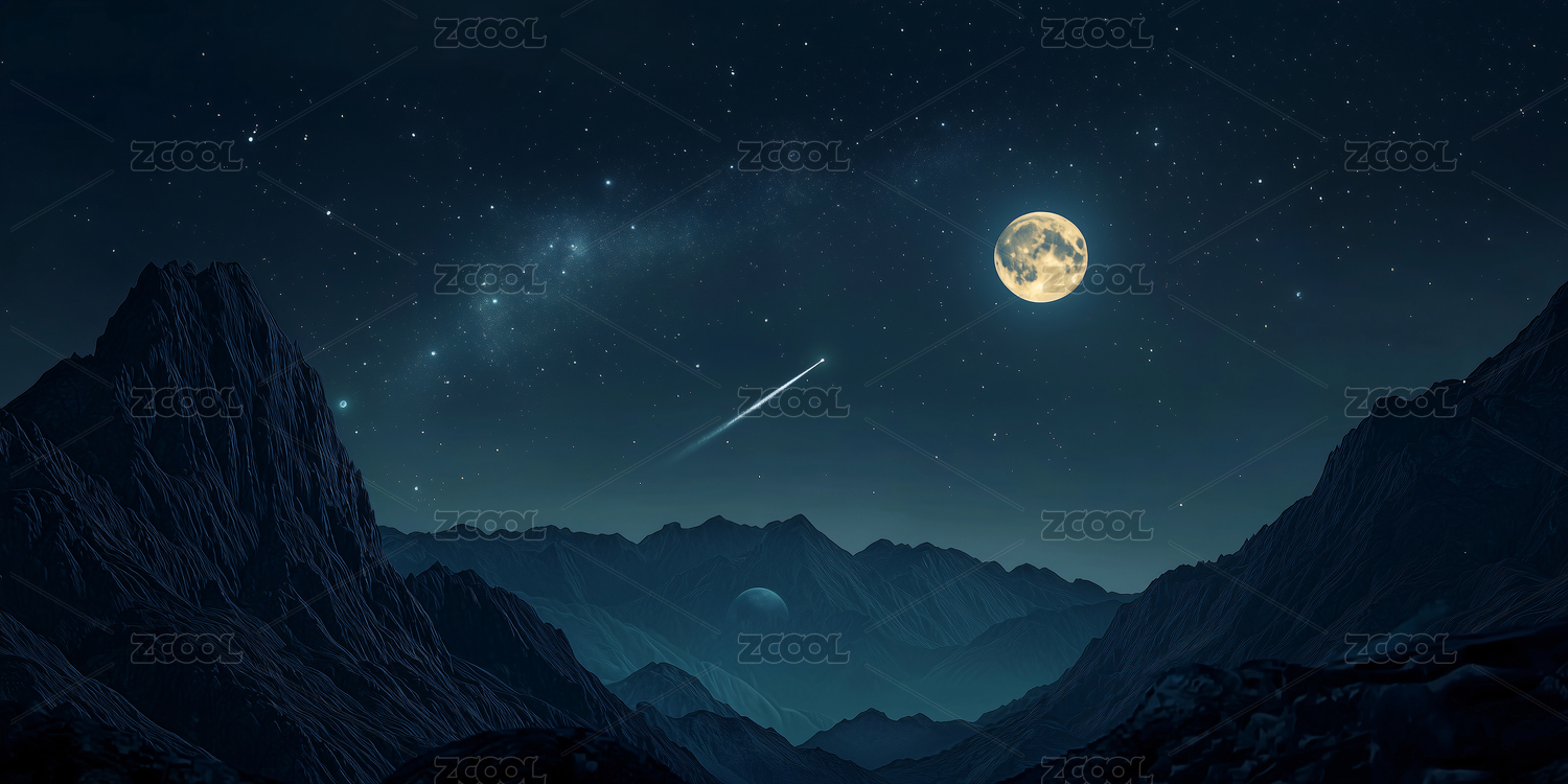 星空中的流星山川插画