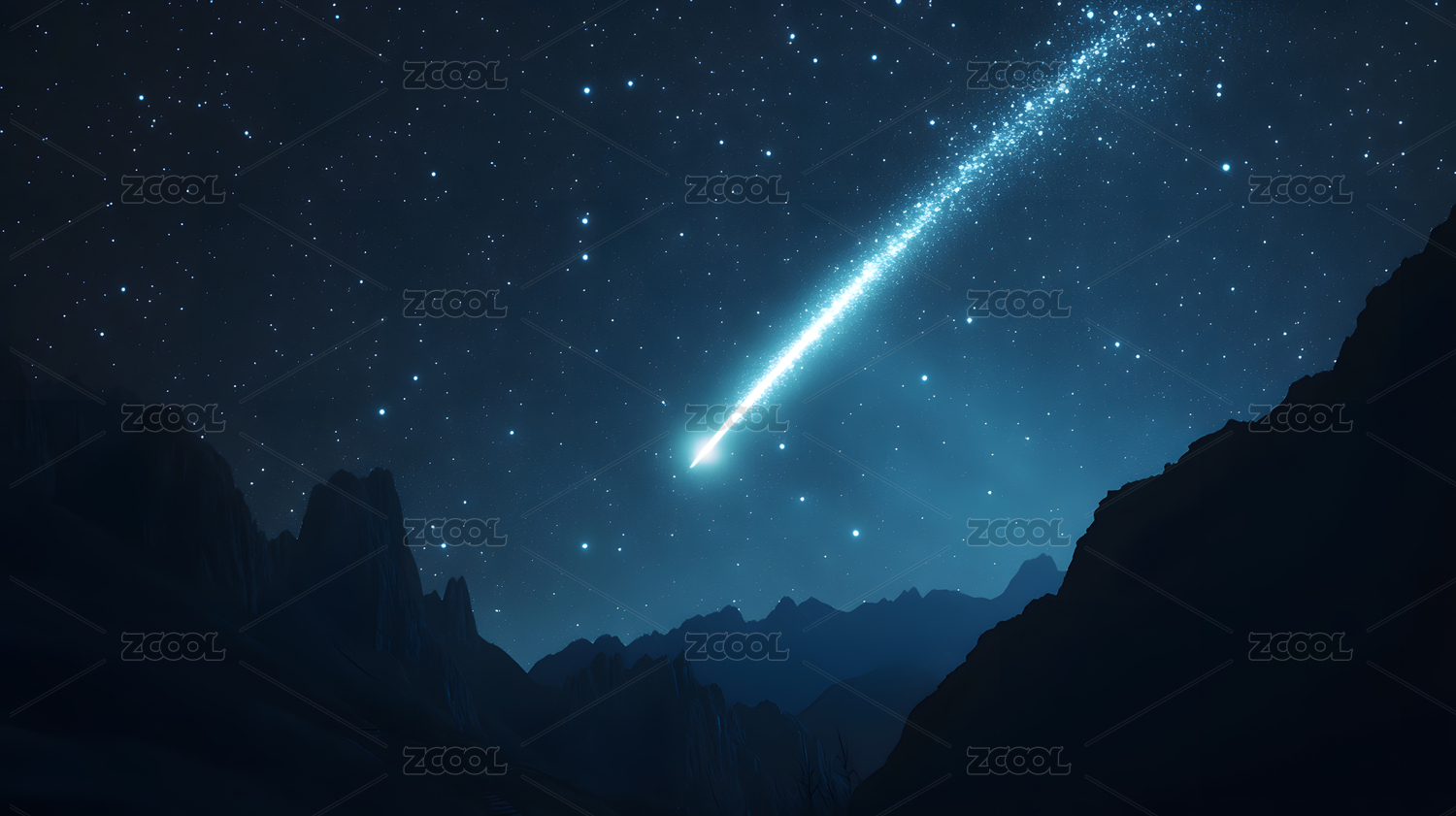 夜空流星划过山岭的静谧美景