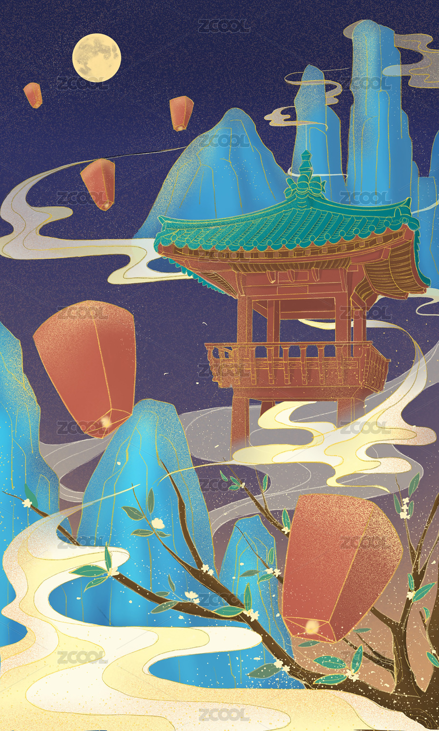 月饼,孔明灯,花灯,桂花酒,玉兔,兔子,月亮,中秋佳节,灯火,桂花