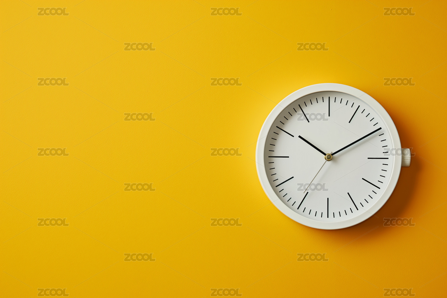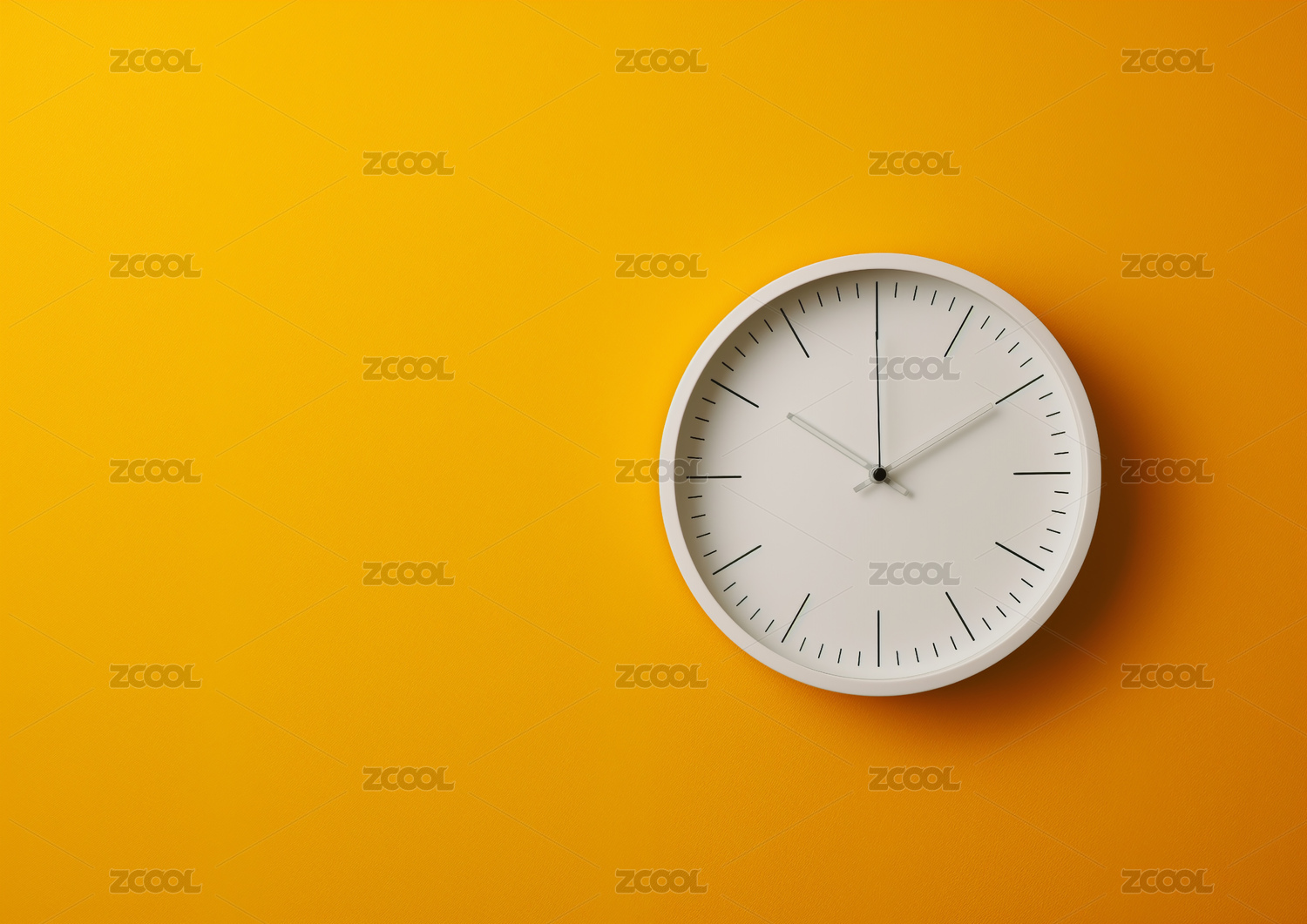 珍惜时间主题,黄底背景墙上一架白色的时钟