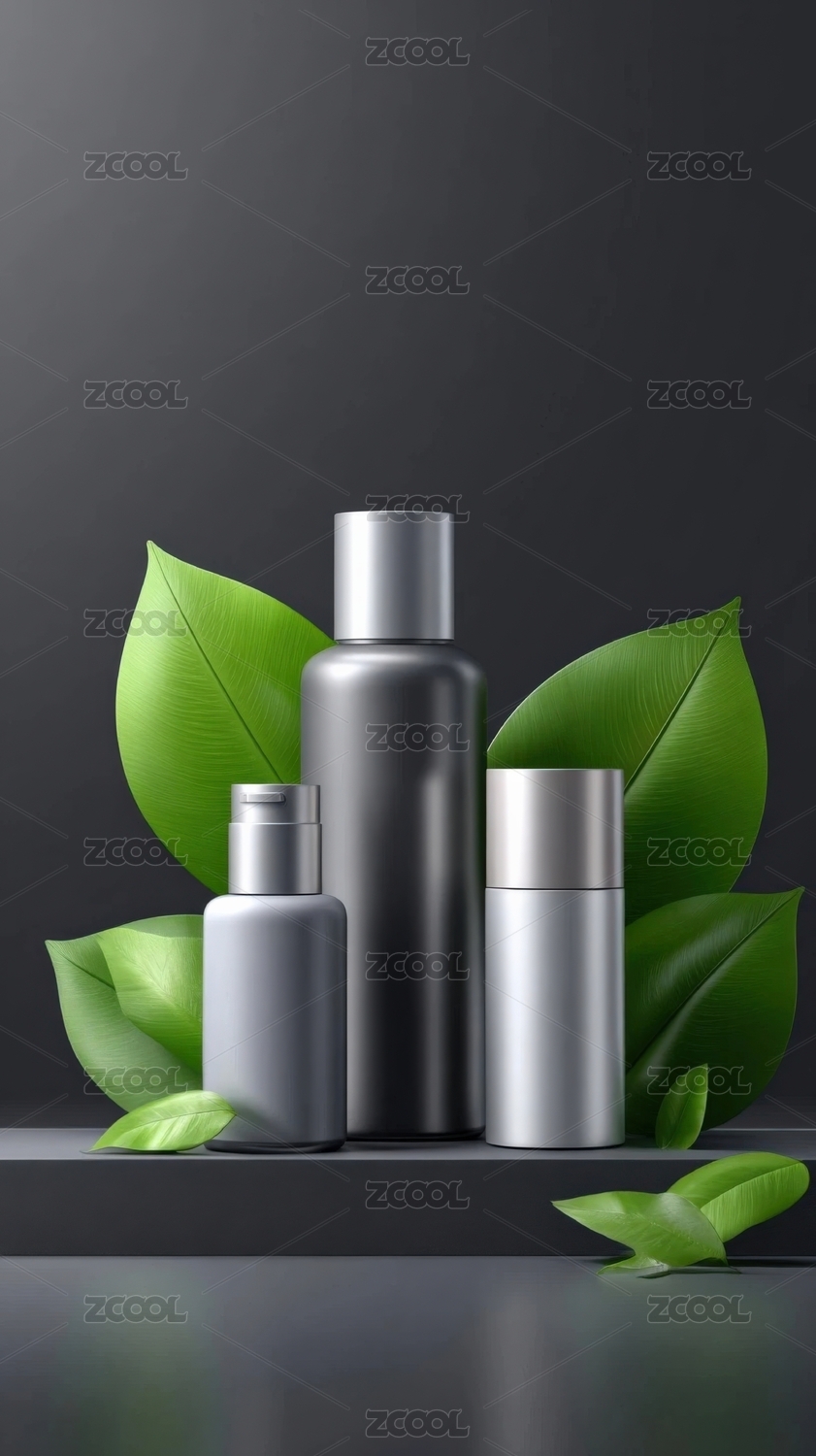 现代护肤品瓶与自然背景