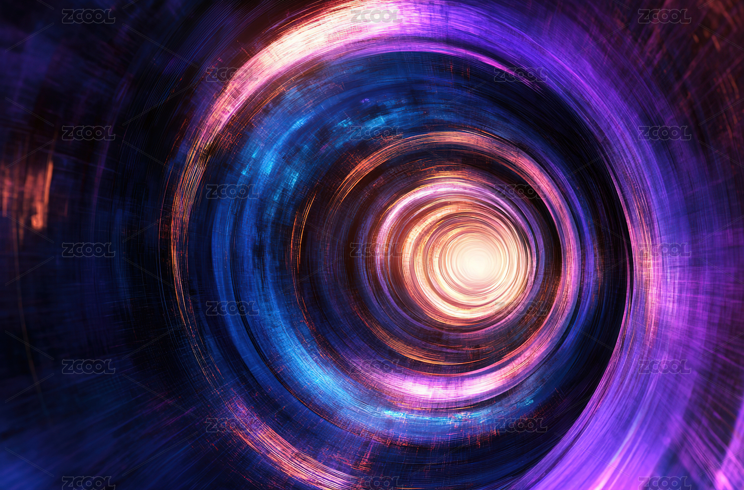 科技感发光光圈背景,蓝色背景上色彩斑斓的