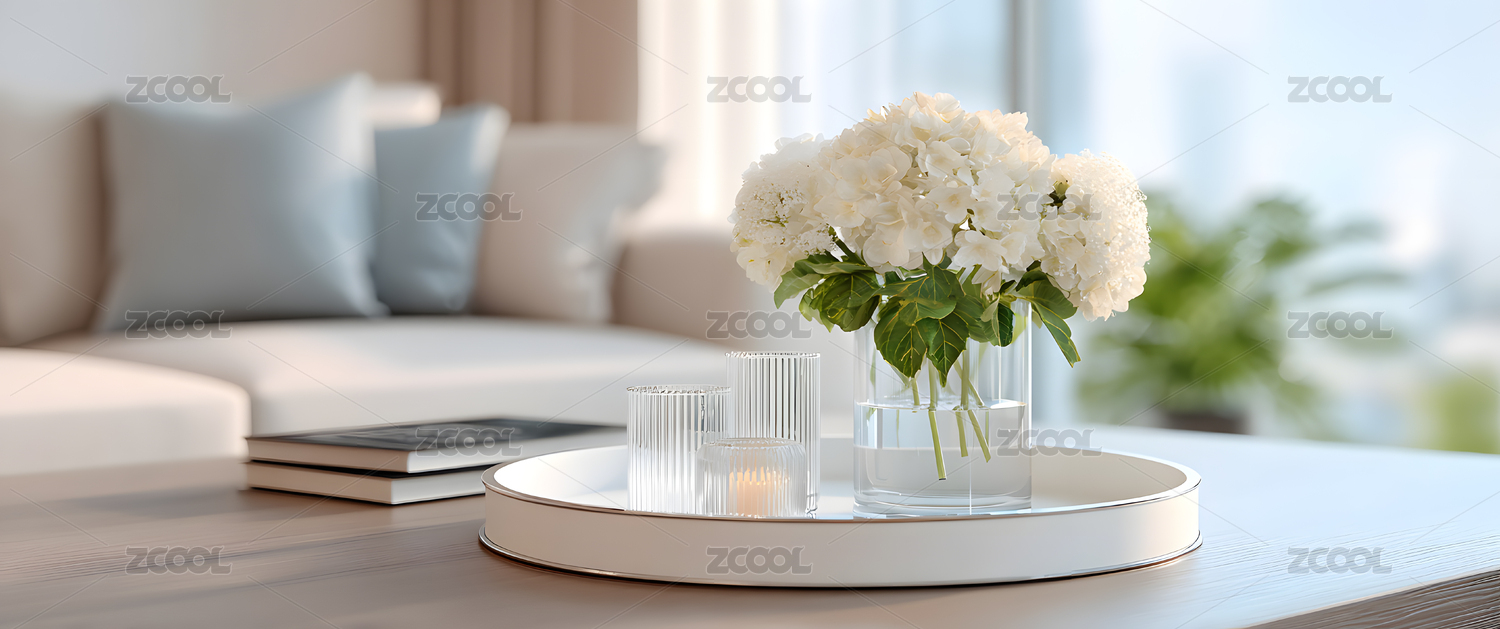 现代, 温馨, 白色, 装饰, 玻璃, 简约, 室内, 灯光,茶具, 花饰