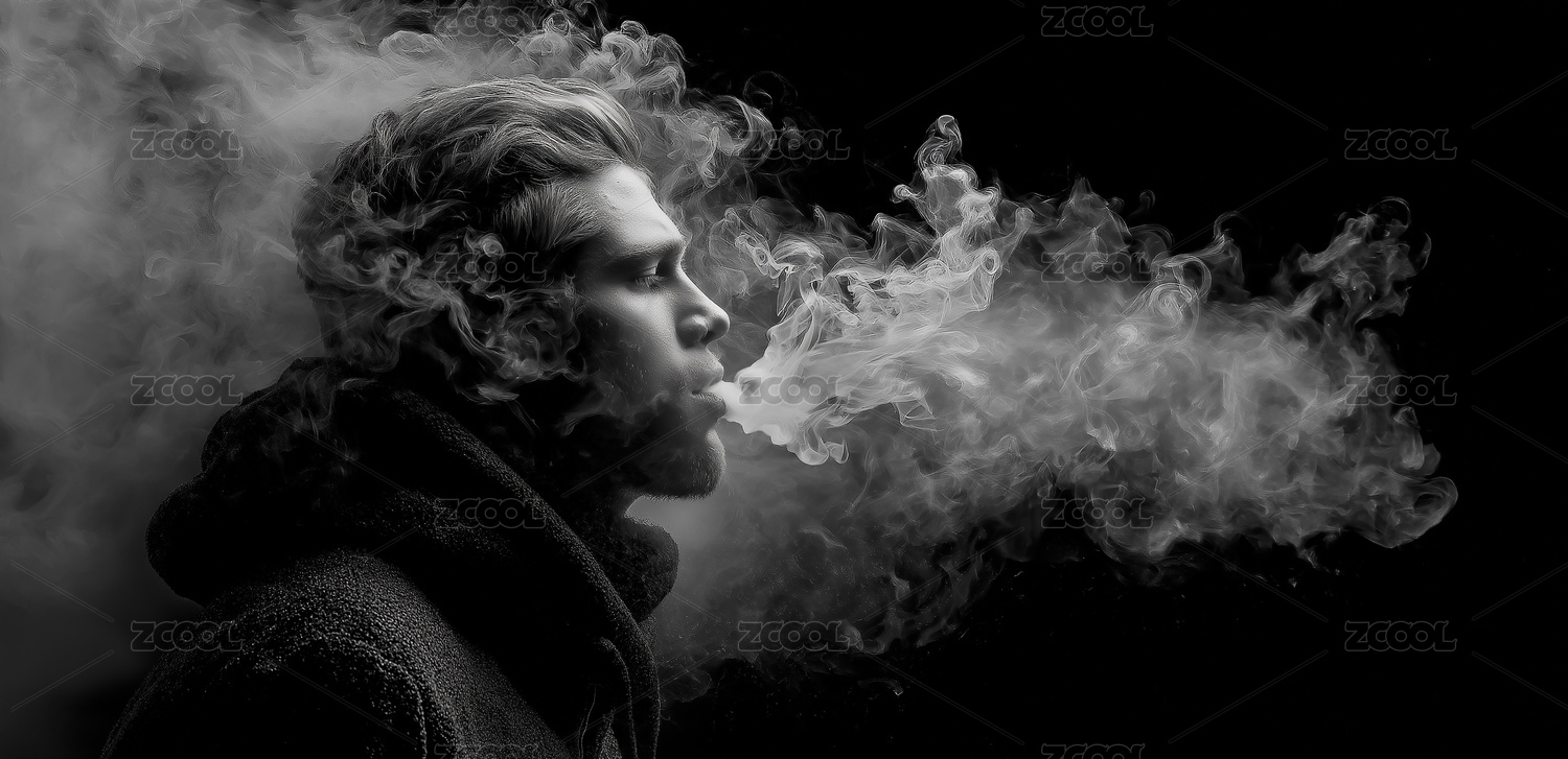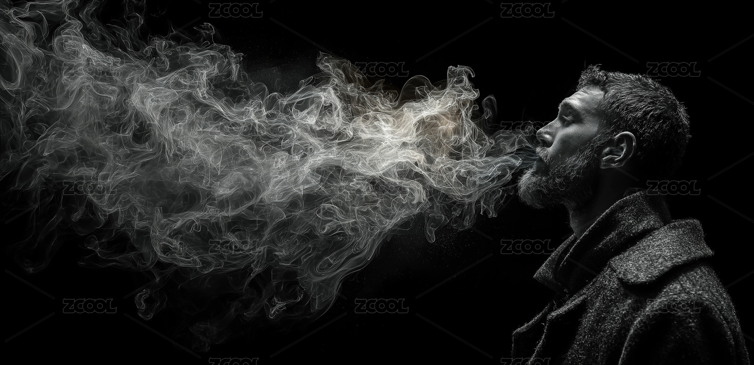 人物吐烟创意摄影艺术装饰画设计素材