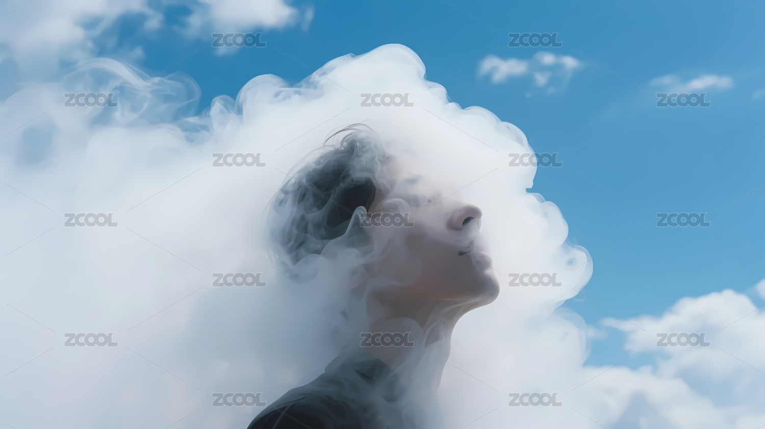 烟雾覆盖的头部人物
