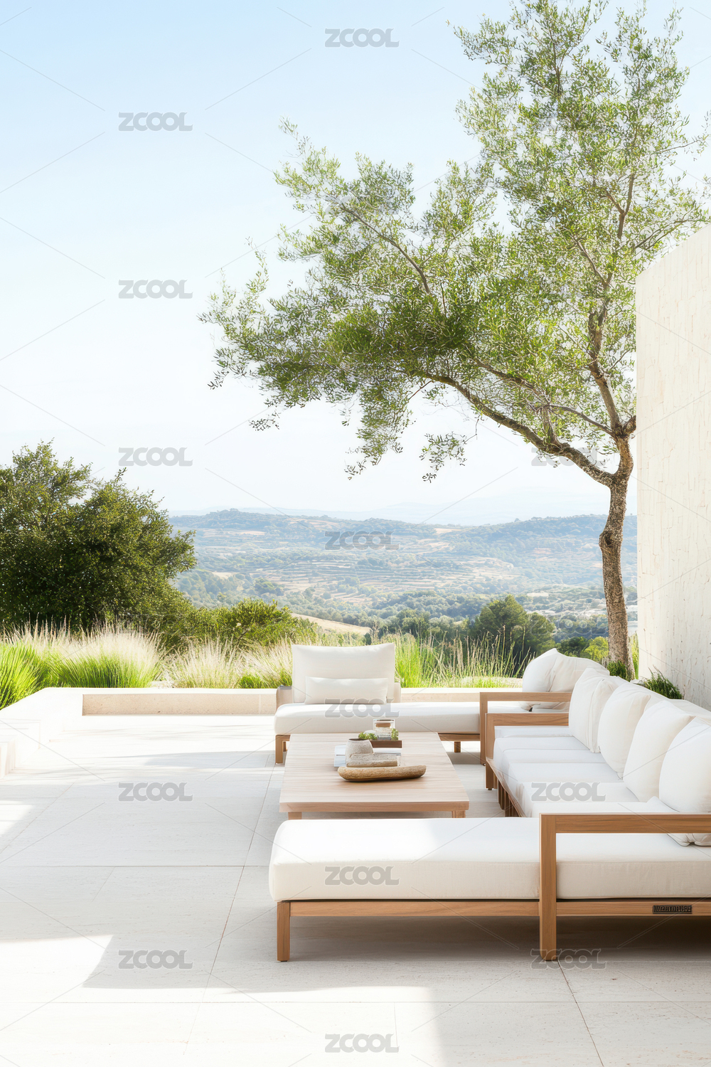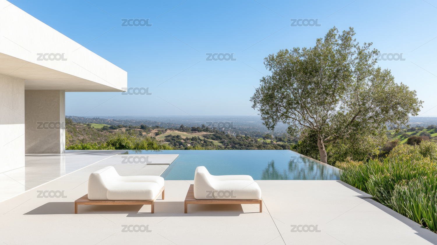 现代,宁静,建筑,设计,景观,户外,躺椅,阳光,树,休闲