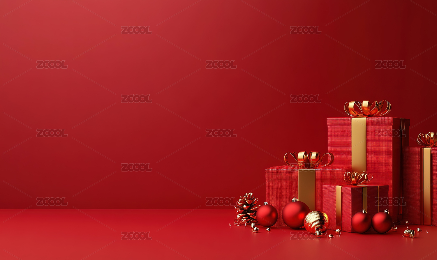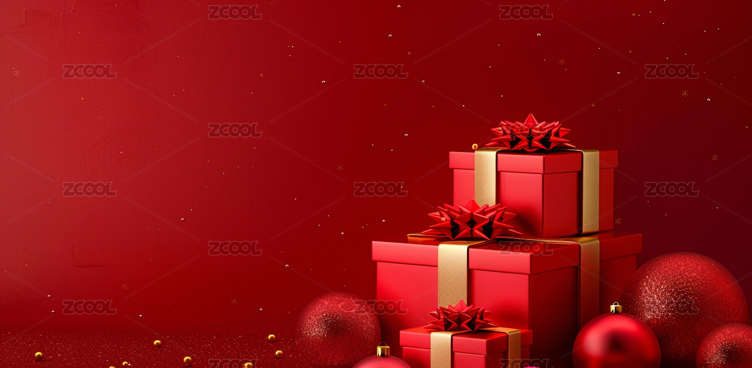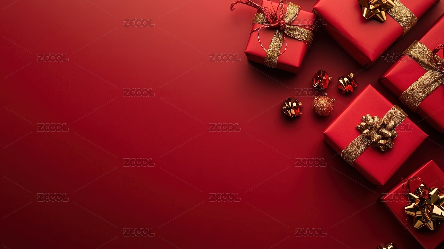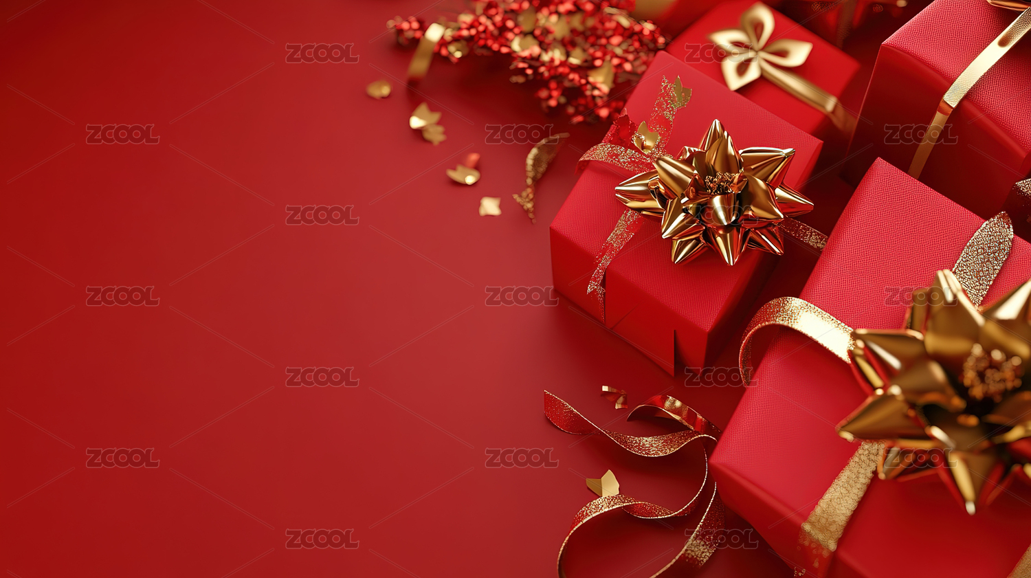 红色背景,圣诞礼物,金色丝带,礼物盒,节日气氛,节日装饰,红色装饰,圣诞球,节日礼物,节日庆祝