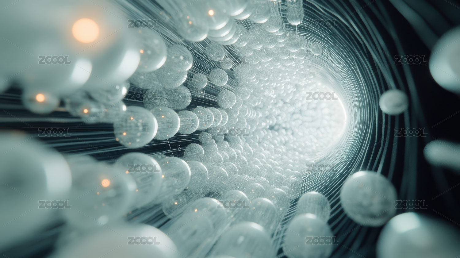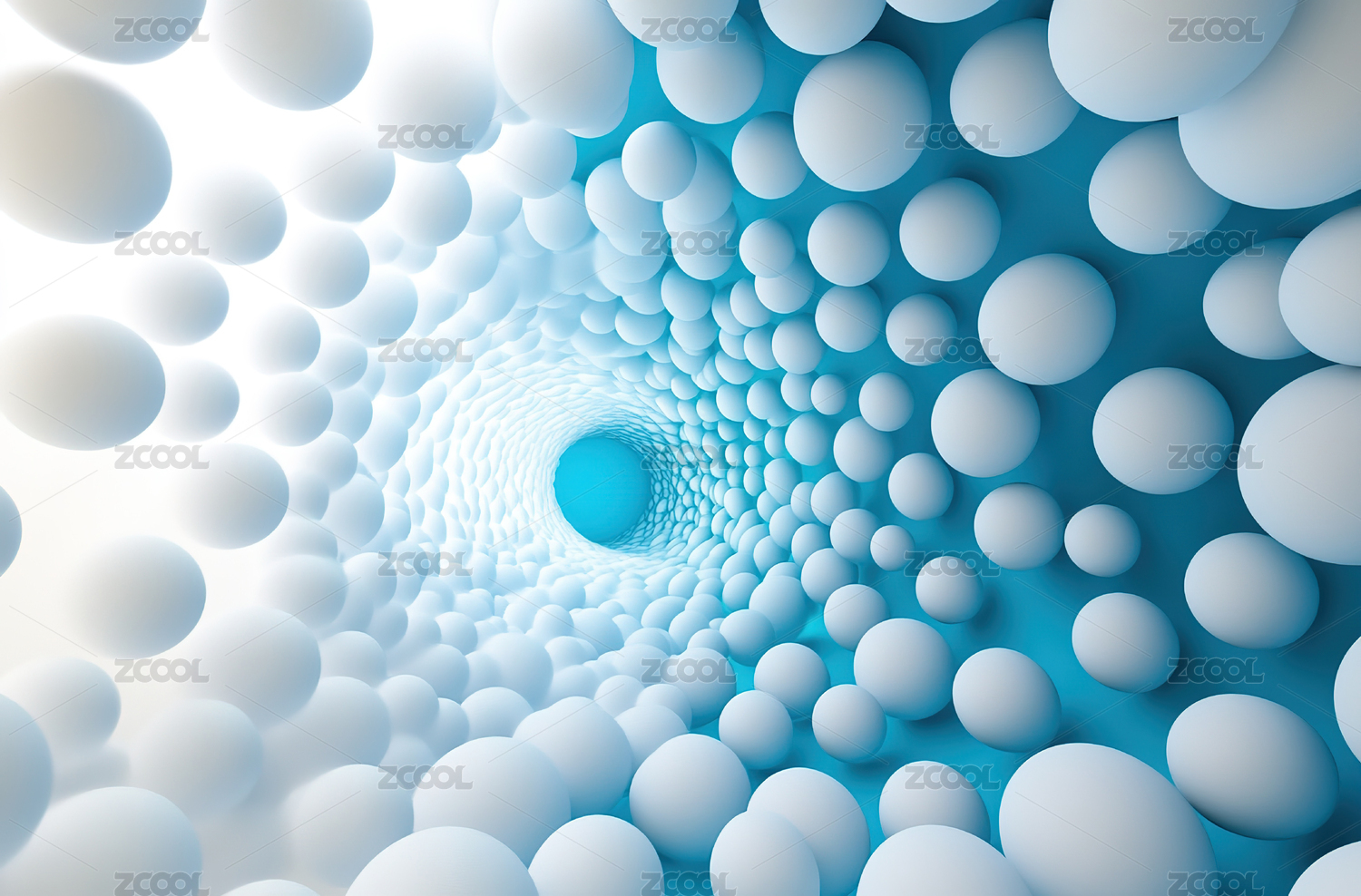 未来主义蓝色隧道与白色球体