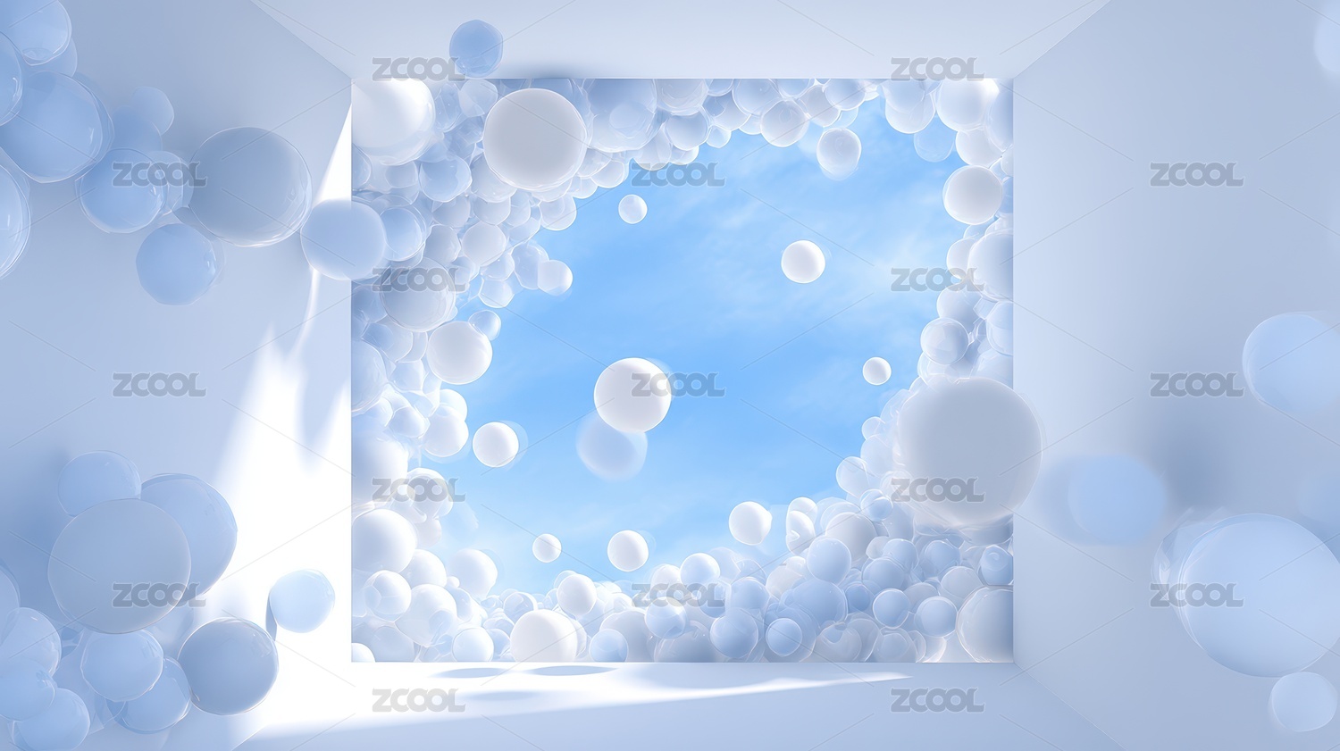 悬浮白色透明球体画面