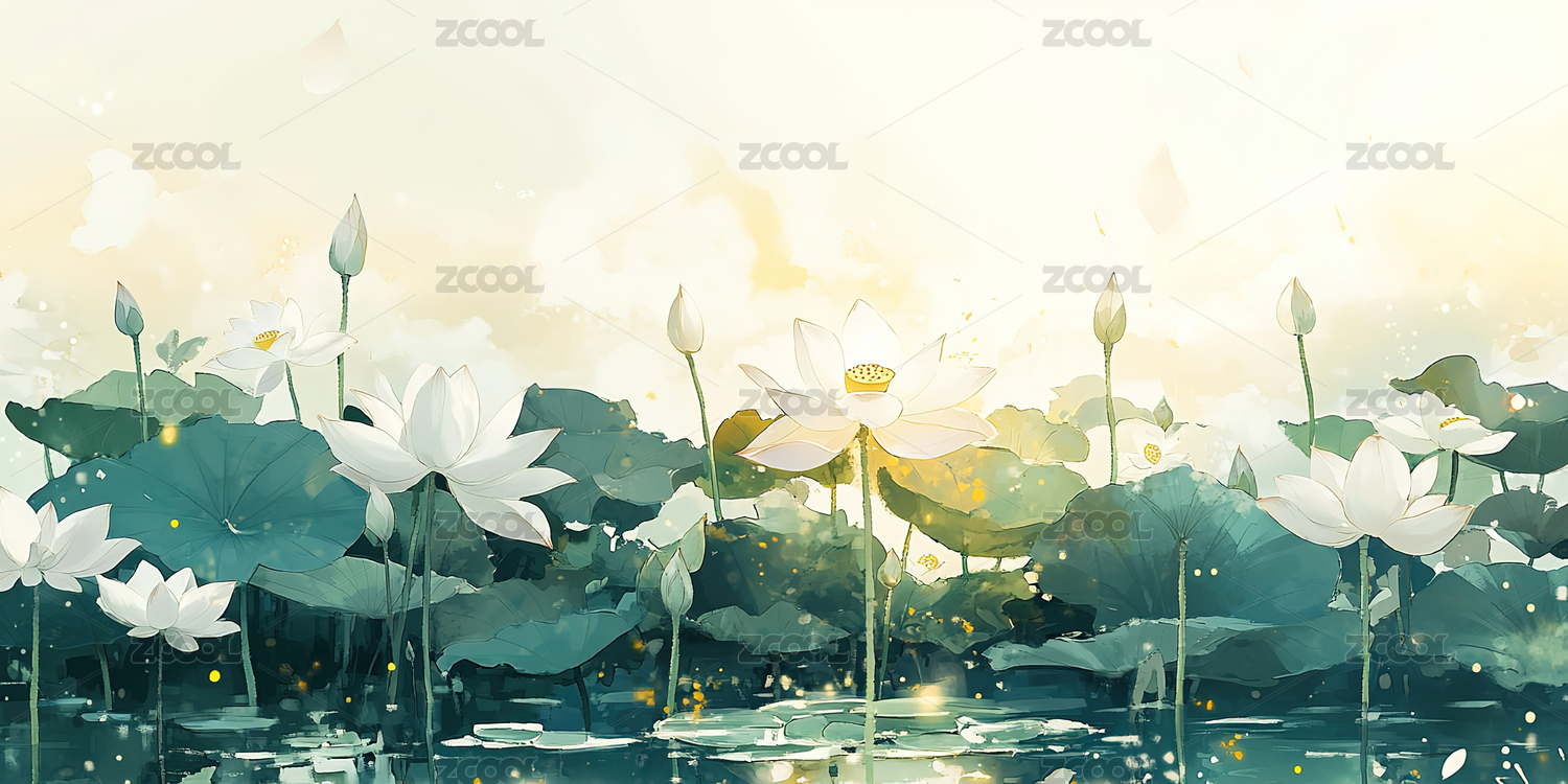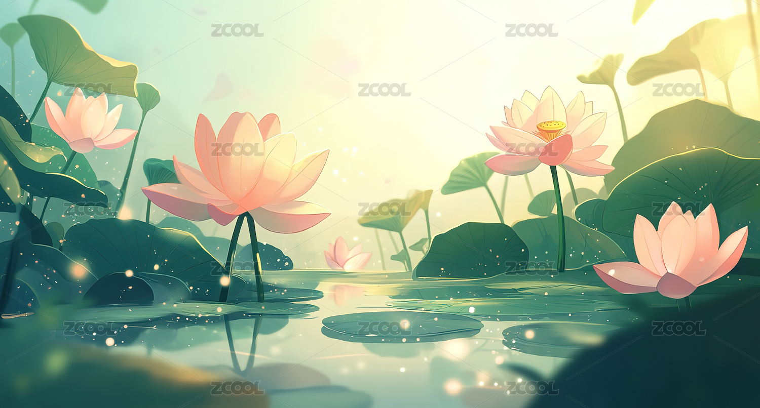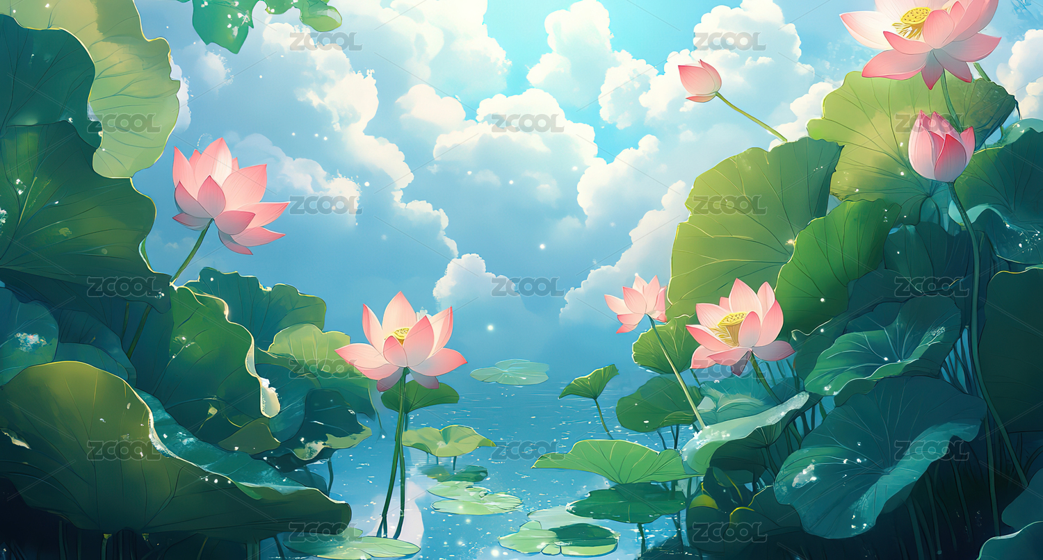 花,户外,特写,自然,夏天,植物,荷花,叶子,清新,AI数字艺术