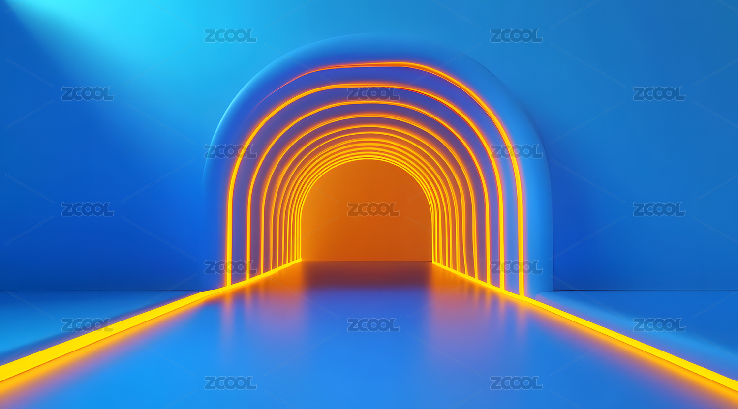 蓝色霓虹拱形隧道