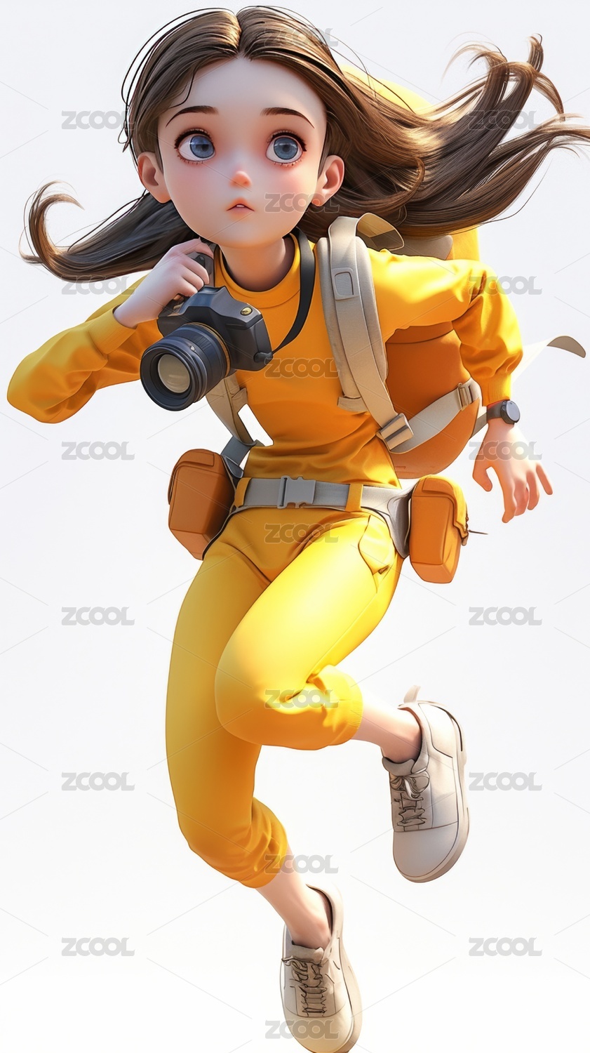 拿着相机的卡通女孩白色背景