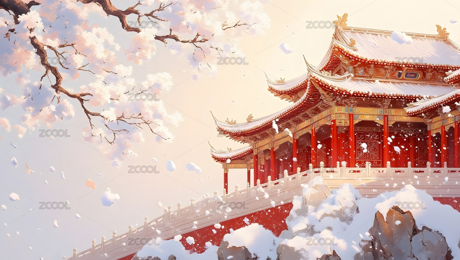春天粉色的樱花和中国传统古建筑屋顶特写