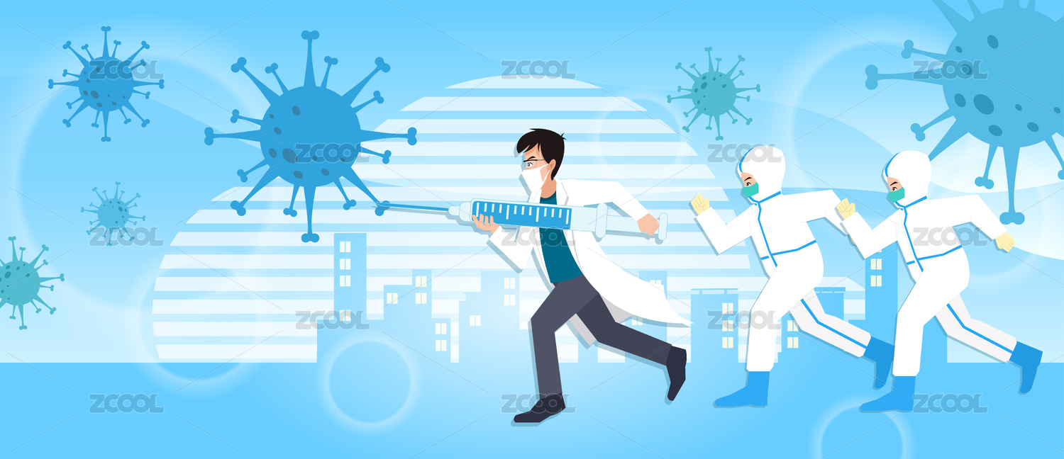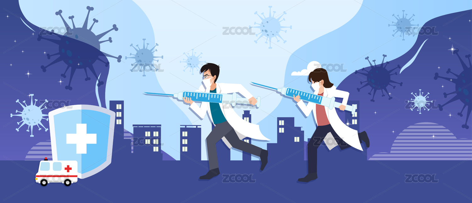 逆行者疫苗抗击疫情插画横版矢量图海报