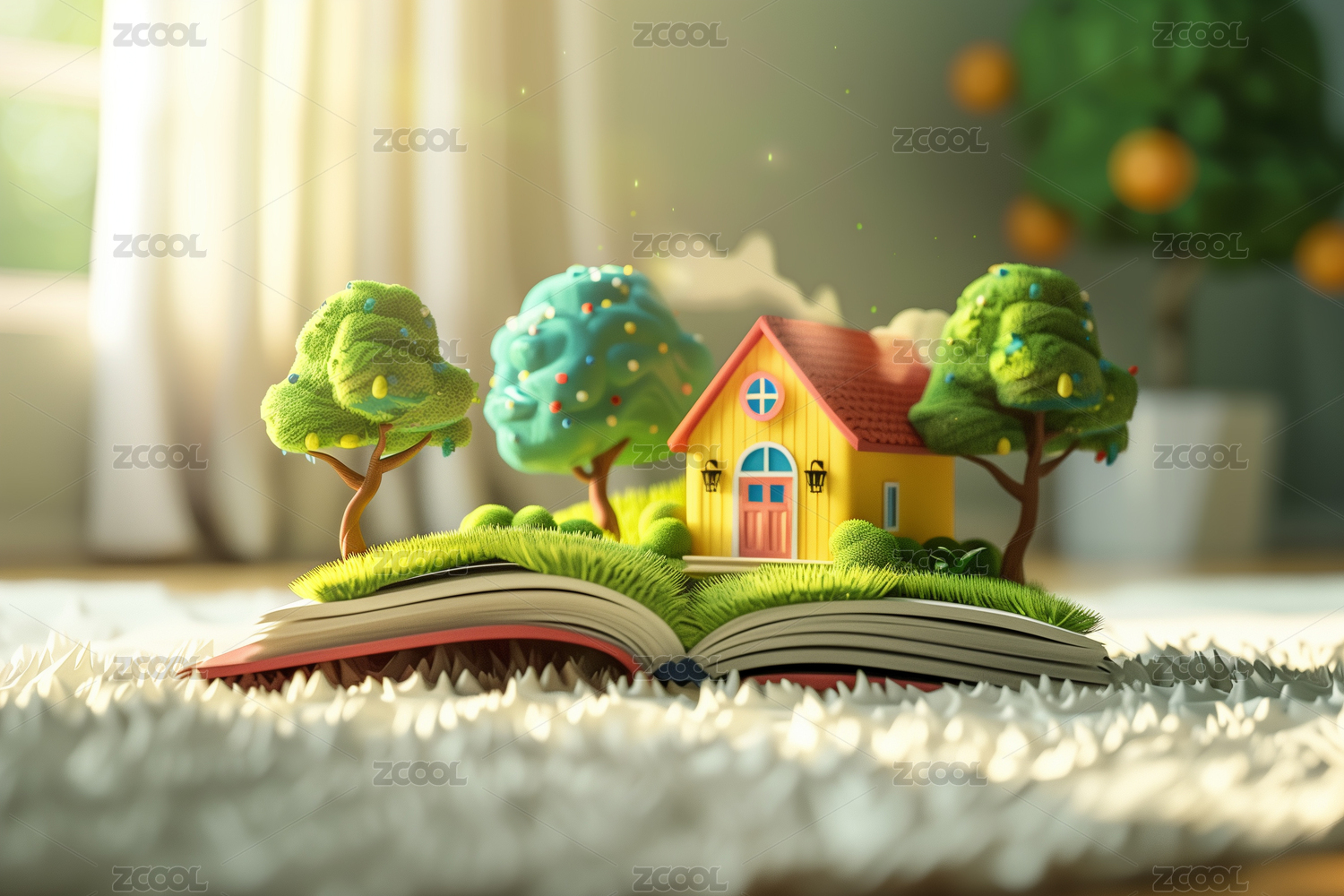 书,室内,地板,儿童,立体,3D,书籍,毛绒,地毯,植物