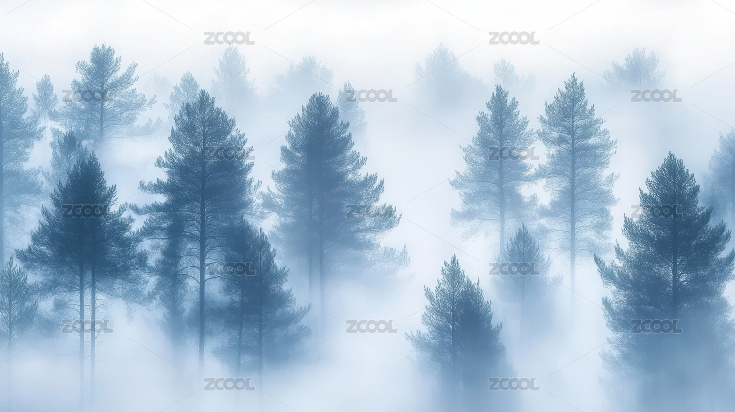 雾中松林的静谧景象