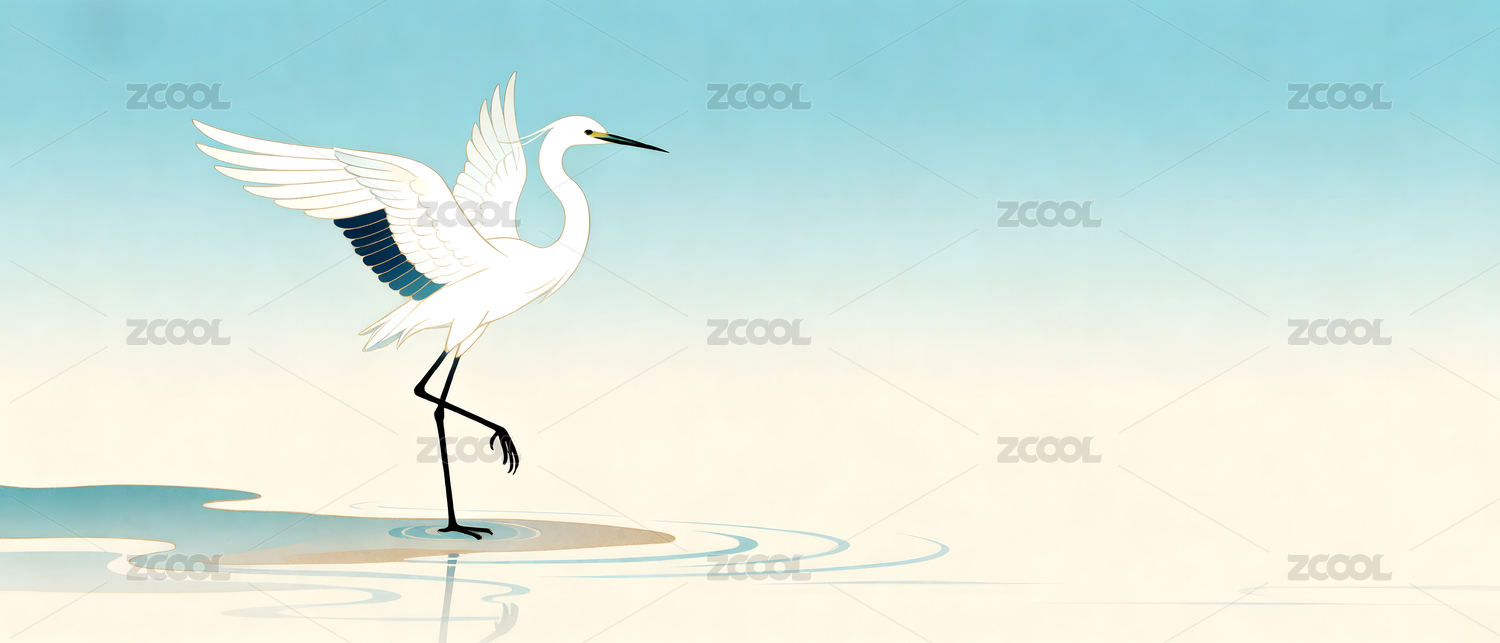 仙鹤,白鹤,丹顶鹤,插画,湖泊,国风,自然,保护,动物,鸟类