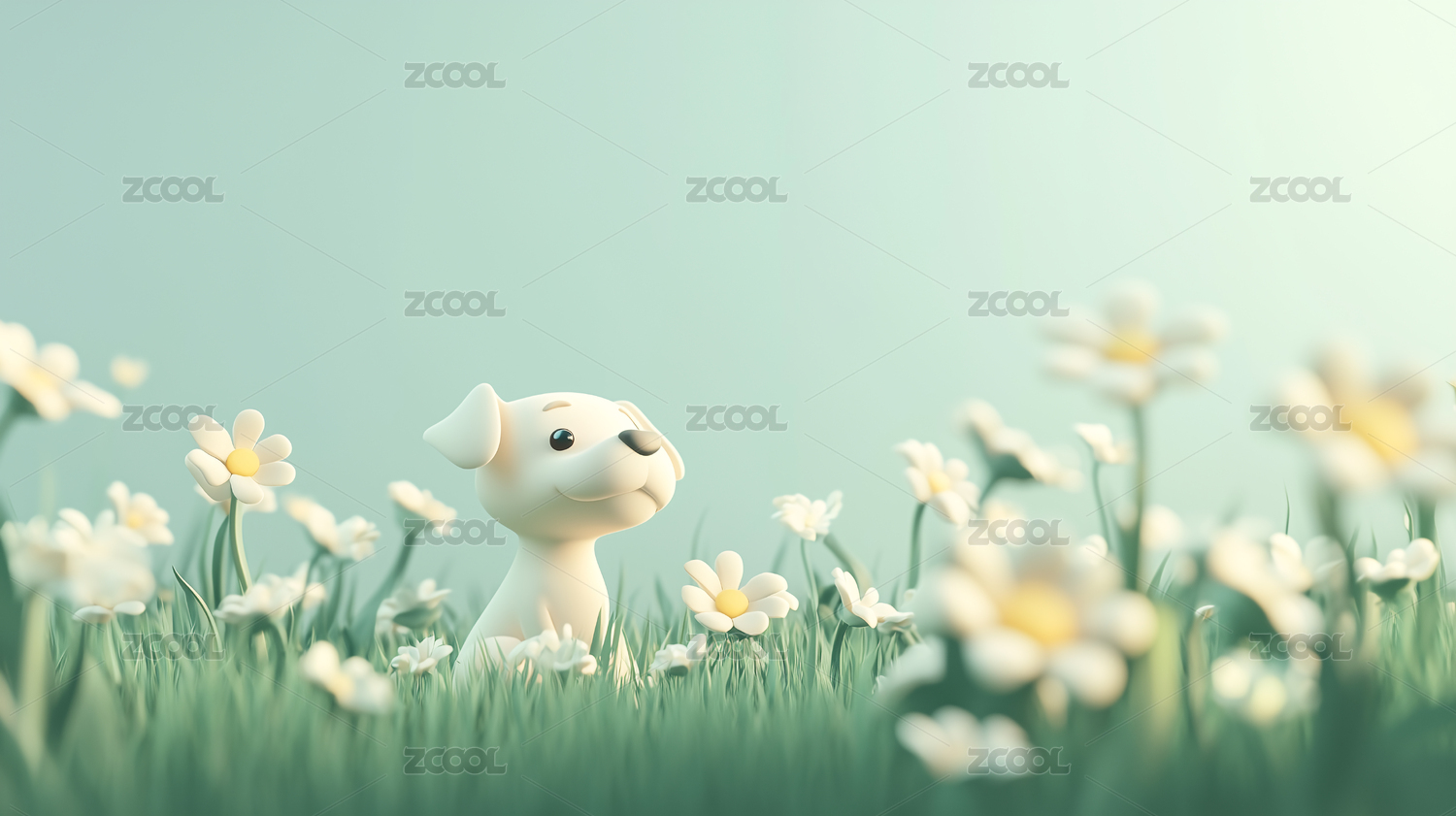 清新治愈草地的可爱小狗3D卡通立体插画
