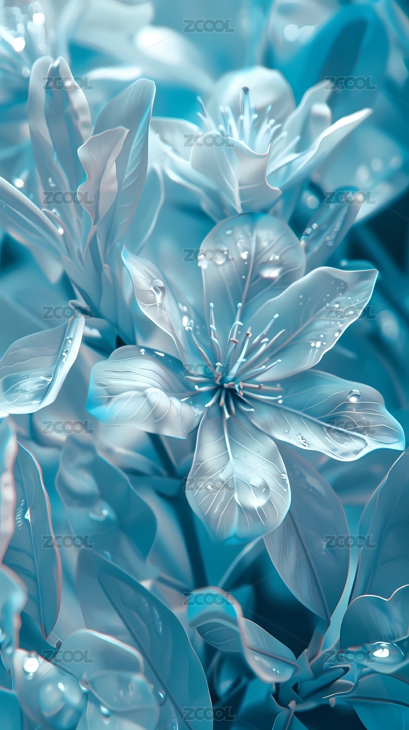 青色花瓣水煮背景