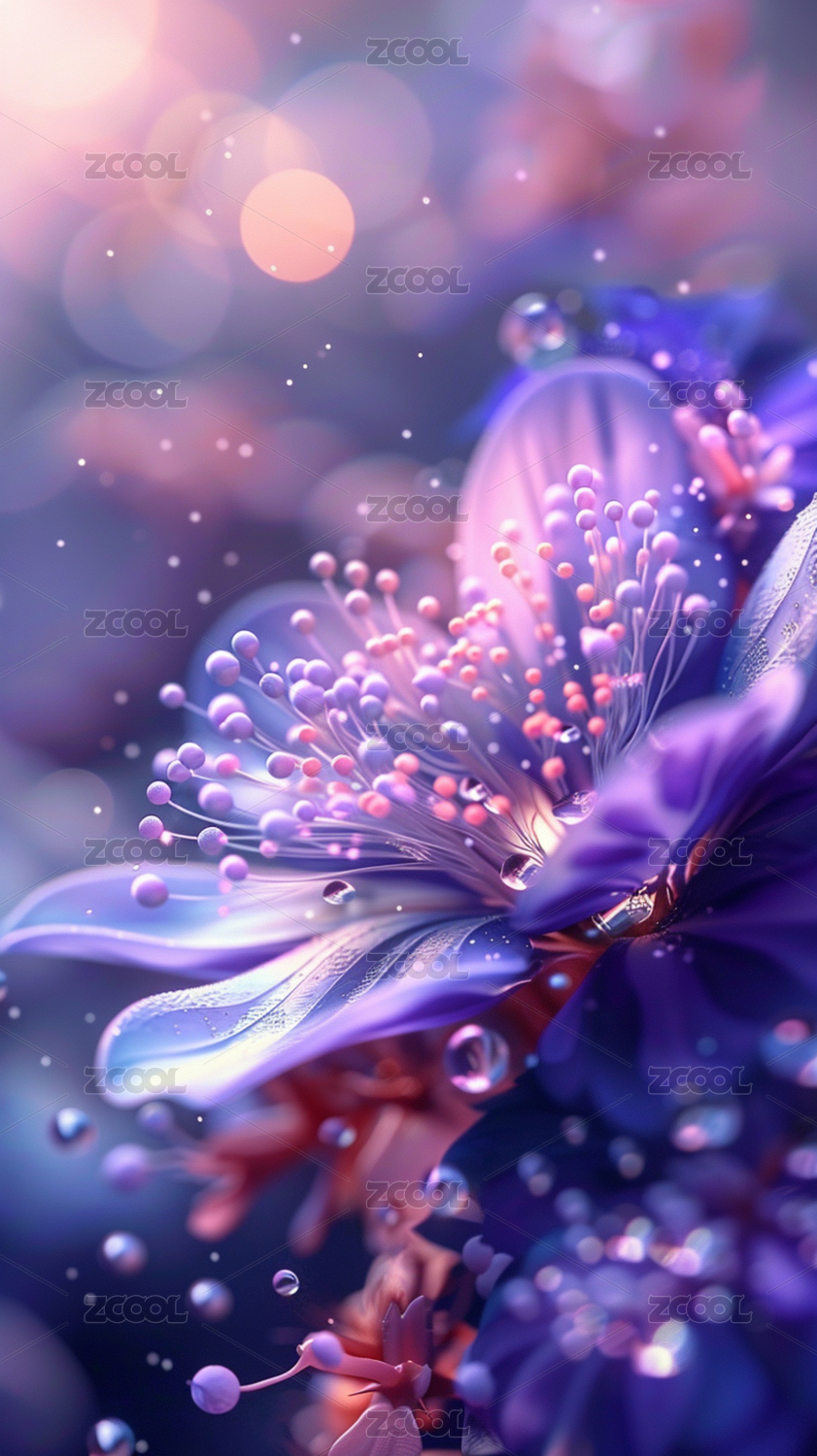 梦幻花朵水滴特写