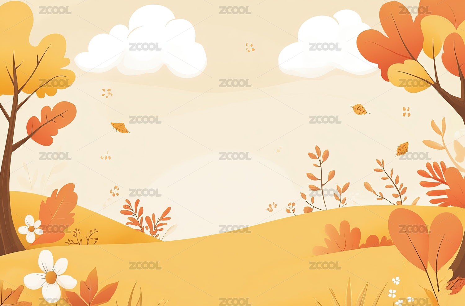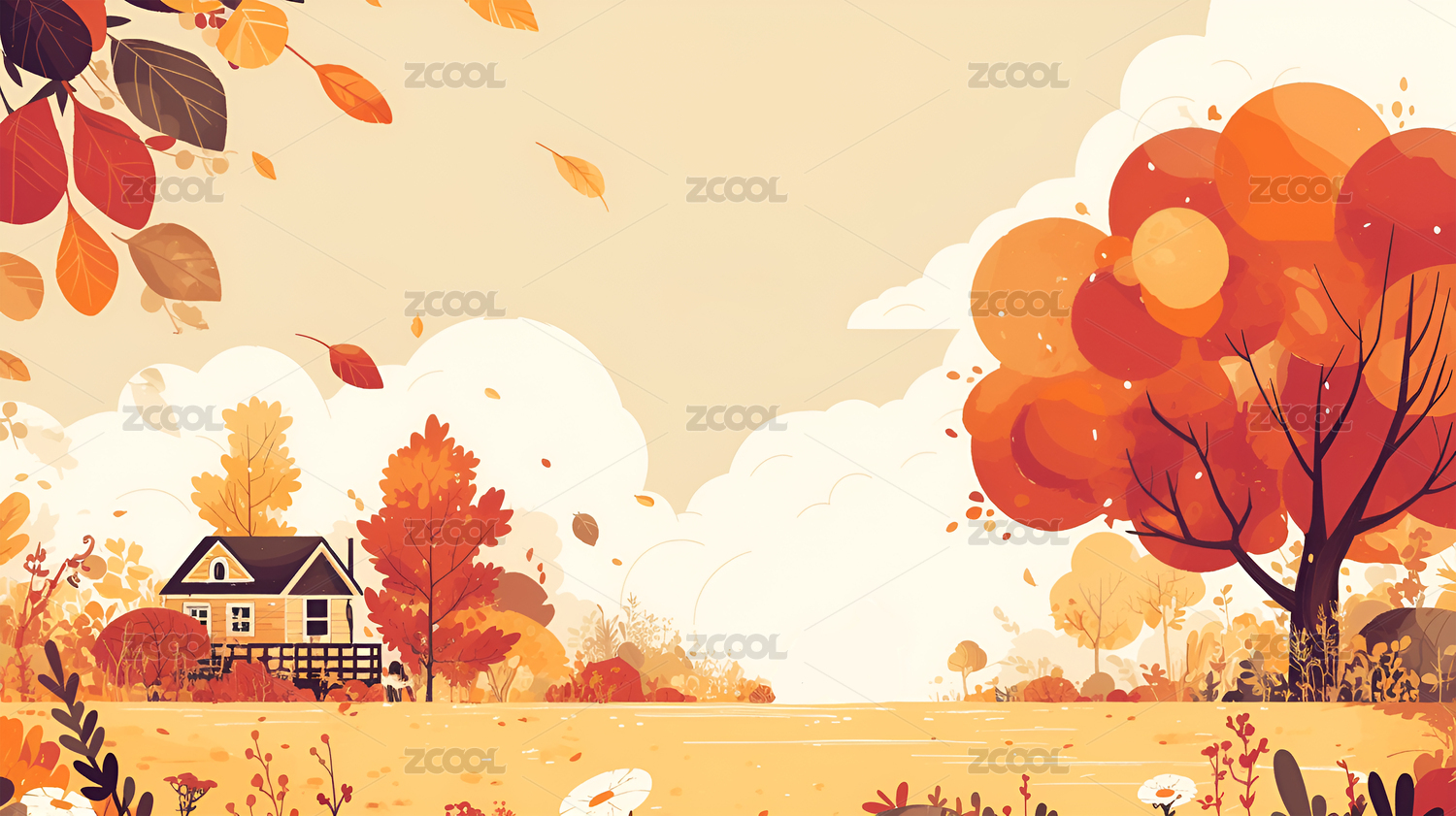 秋天秋季立秋秋分自然户外风景卡通漫画插画