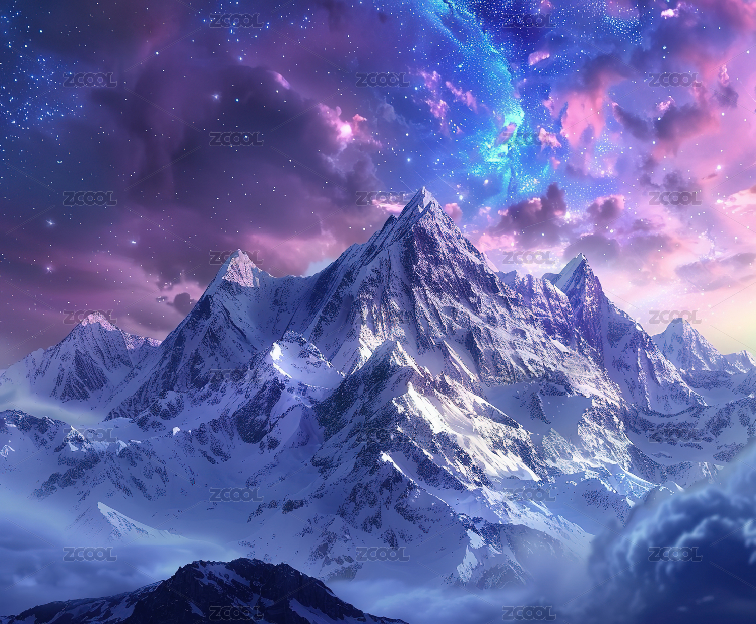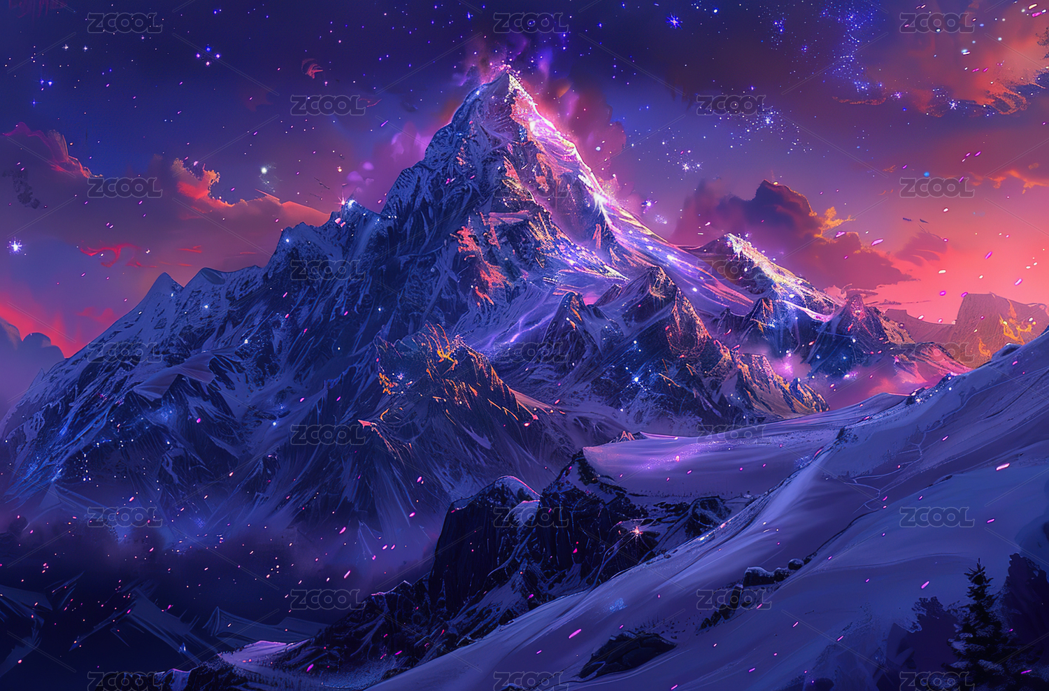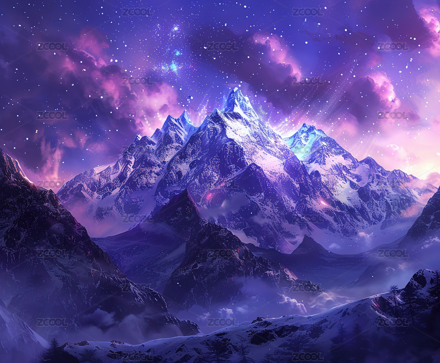 一场壮观的北极光秀照亮了被雪覆盖的山脉