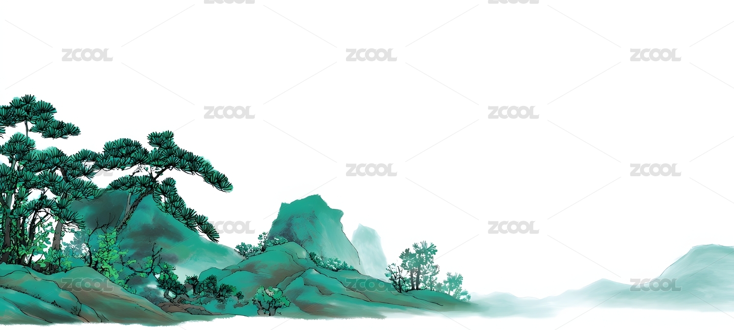 自然山水水墨风插画