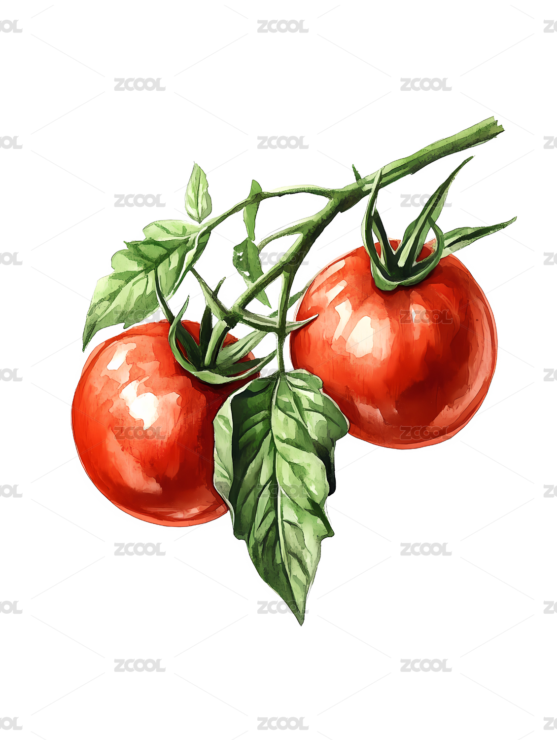 西红柿元素水彩插画