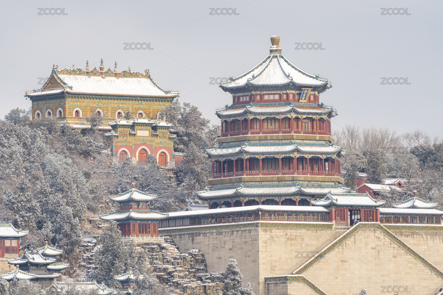 颐和园佛香阁雪景